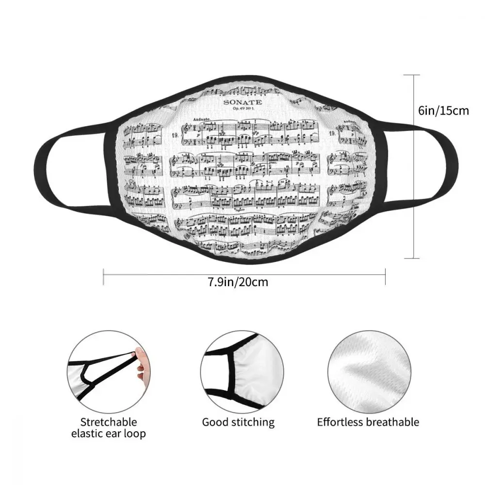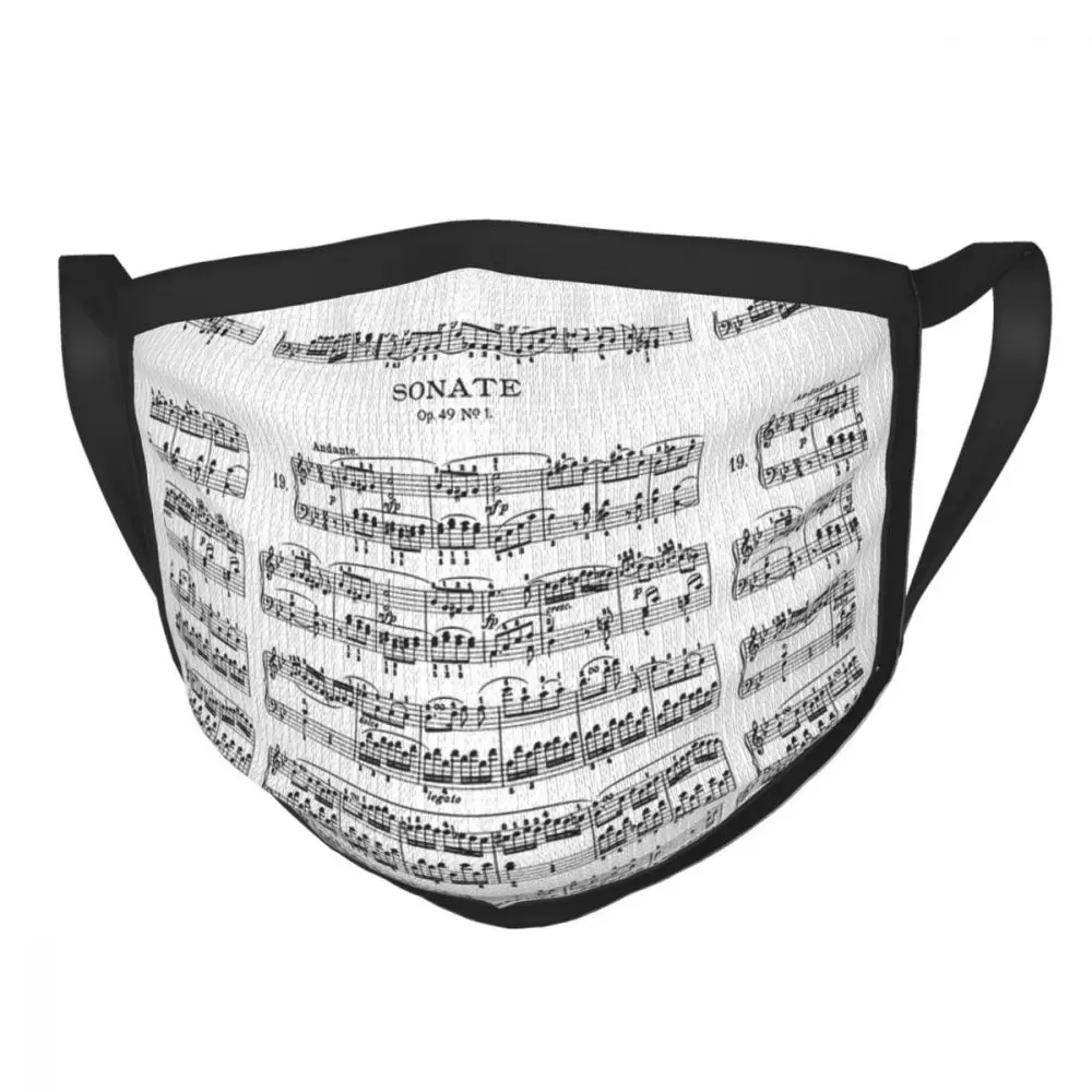 Многоразовая маска для лица, с изображением нот и нот, Sonate Op 49 No. 1, маска против смога, защитный чехол, респиратор, маска для рта