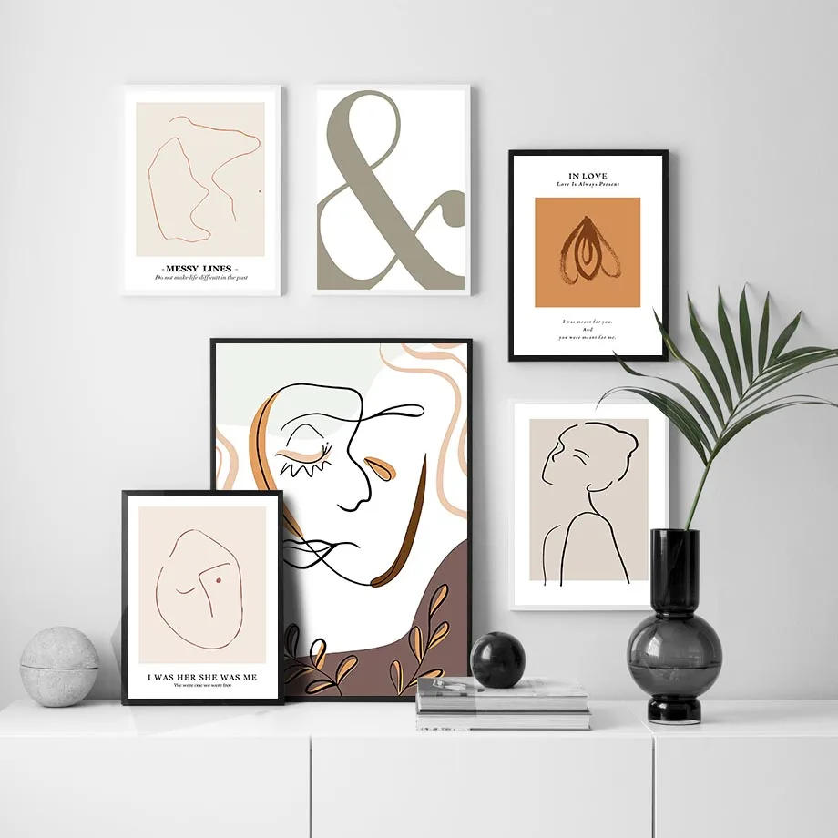 Настенная картина хаки с абстрактными линиями для девушек, скандинавский постер на холсте, современная модная картина влюбленная для домашнего декора без рамки
