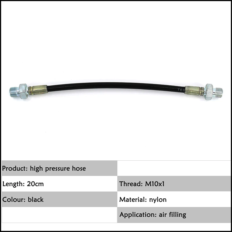 Шланг для пневматики M10x1, длина 20 см, с наружной резьбой, для заправки воздуха, нейлоновые черные быстроразъемные соединители