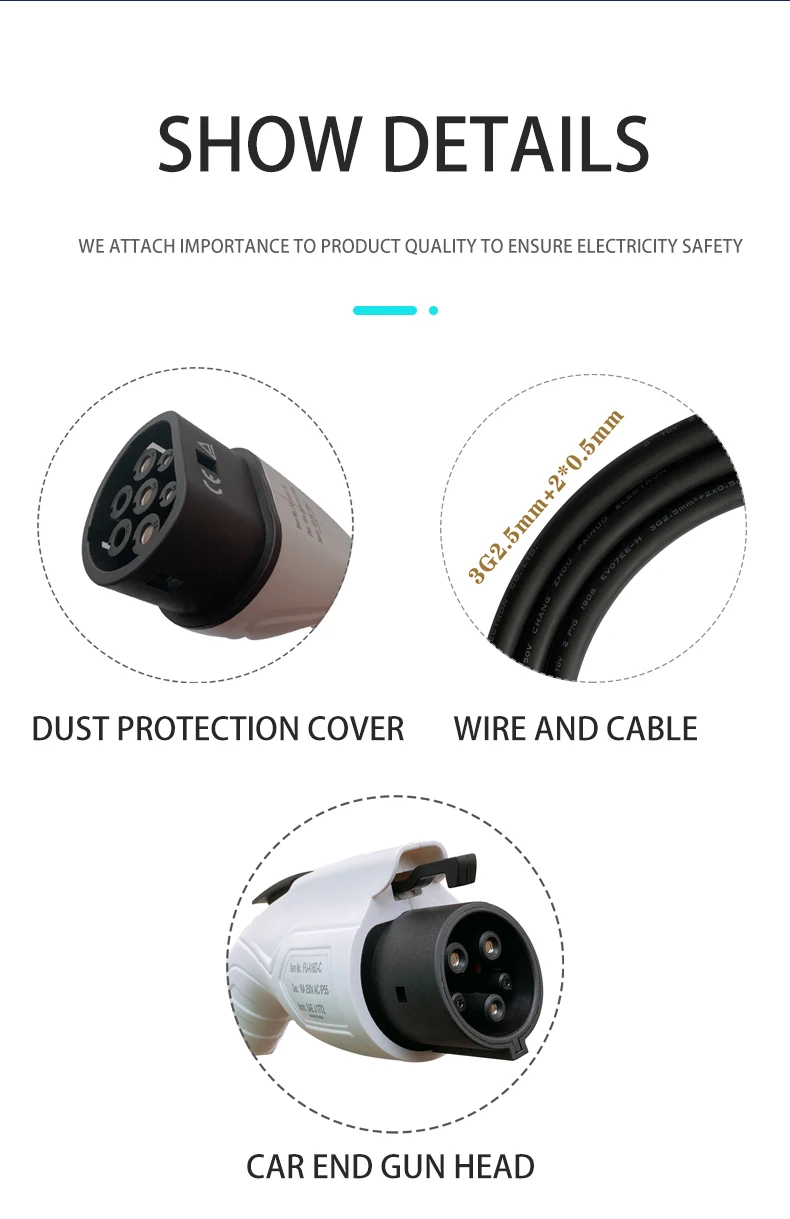 Электрическое автомобильное зарядное устройство Type2 EV зарядный кабель 5m быстрая зарядка, безопасная зарядка