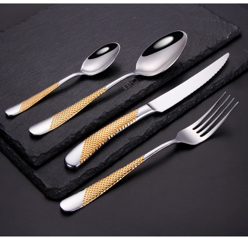 Набор столовых приборов из нержавеющей стали, вилка, ложки, ножи, золото, набор Европейской посуды