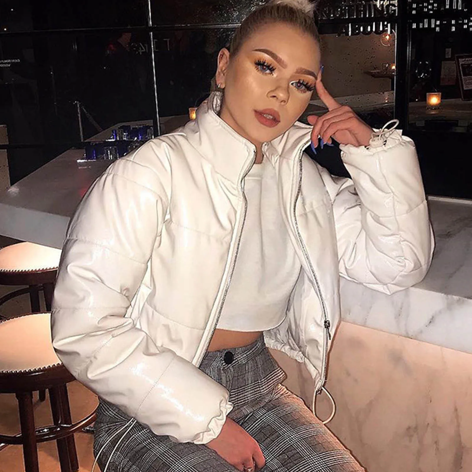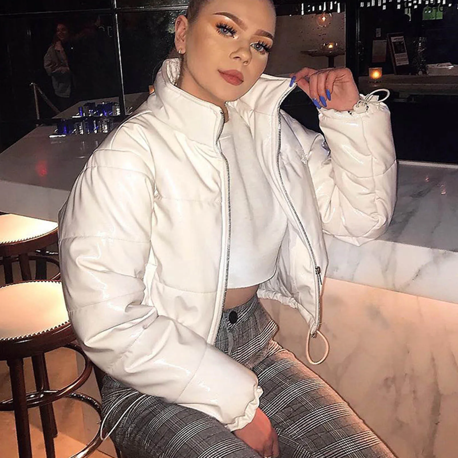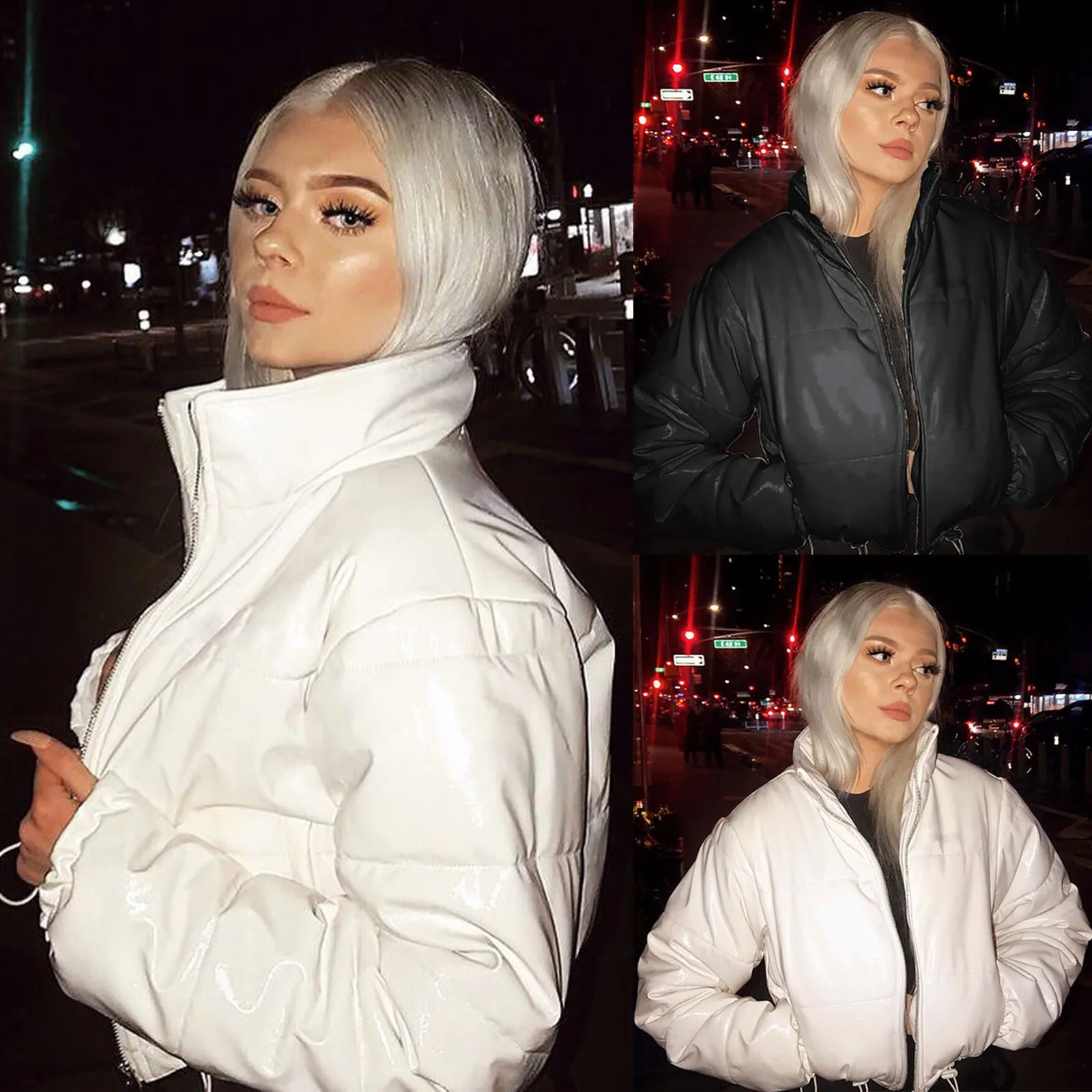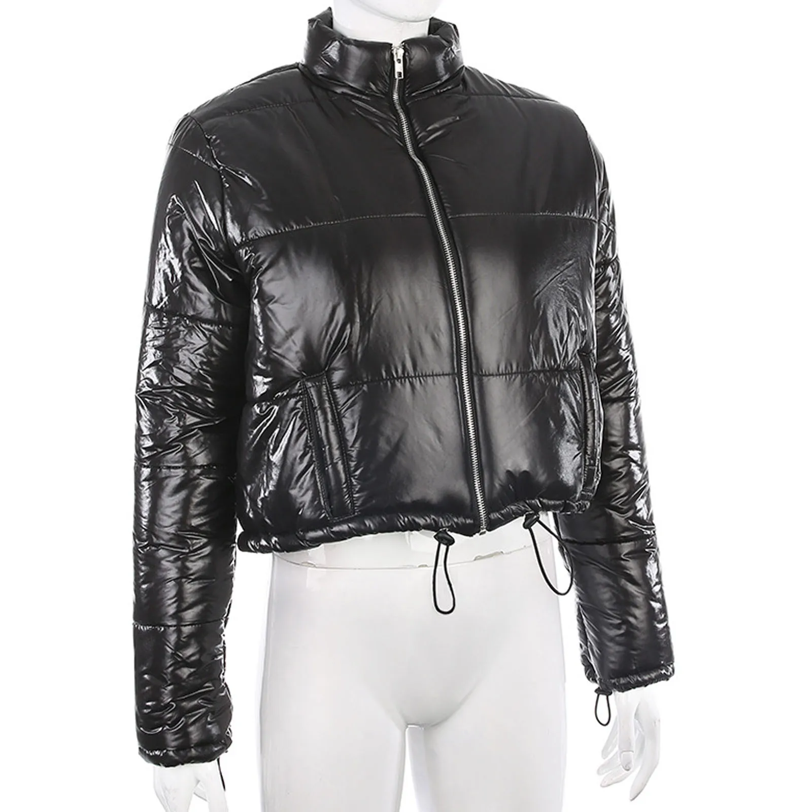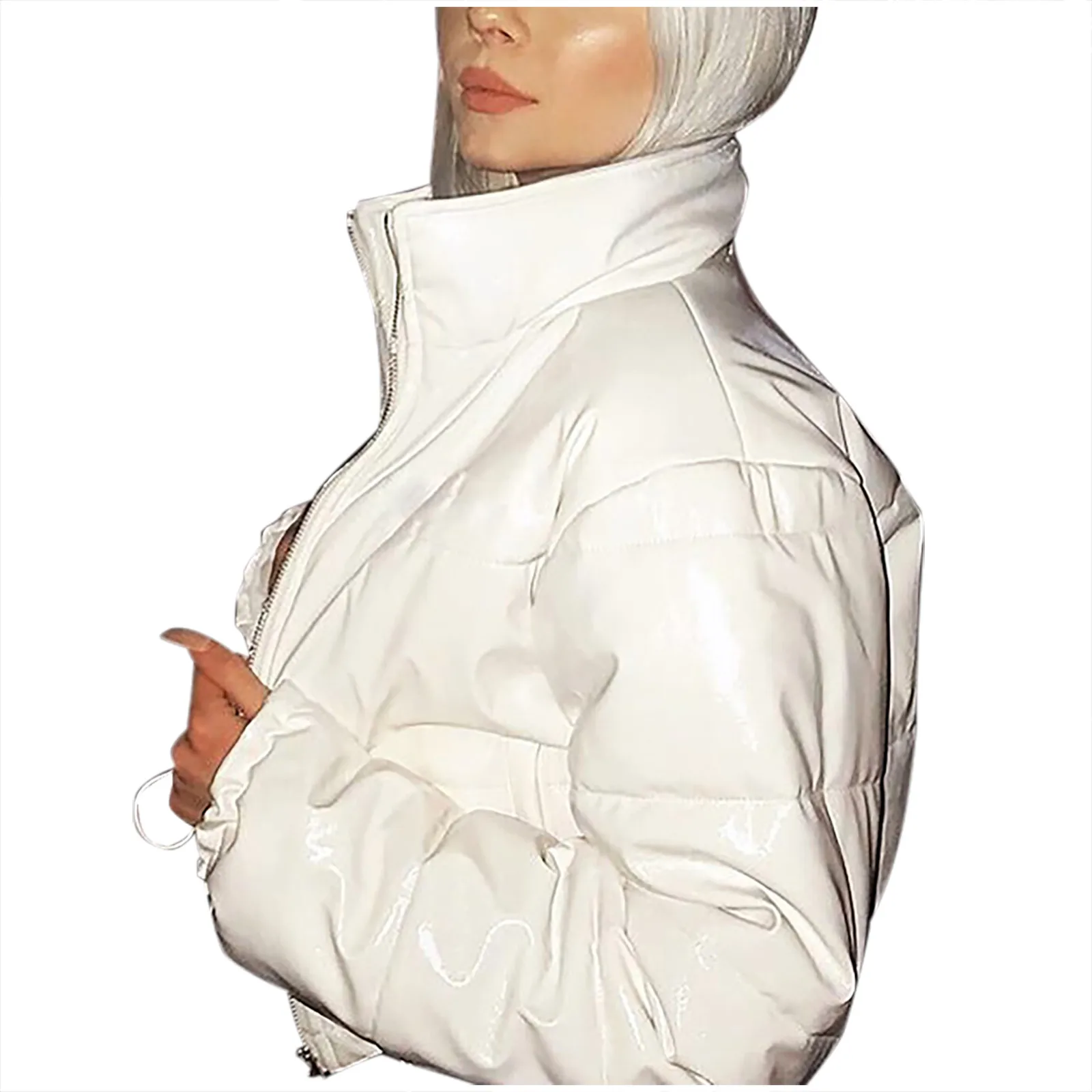 Модное женское зимнее пальто, верхняя одежда, однотонные, с воротником-стойкой, сохраняющие тепло, на молнии, женская короткая куртка с длинным рукавом, большие размеры, парки # g3
