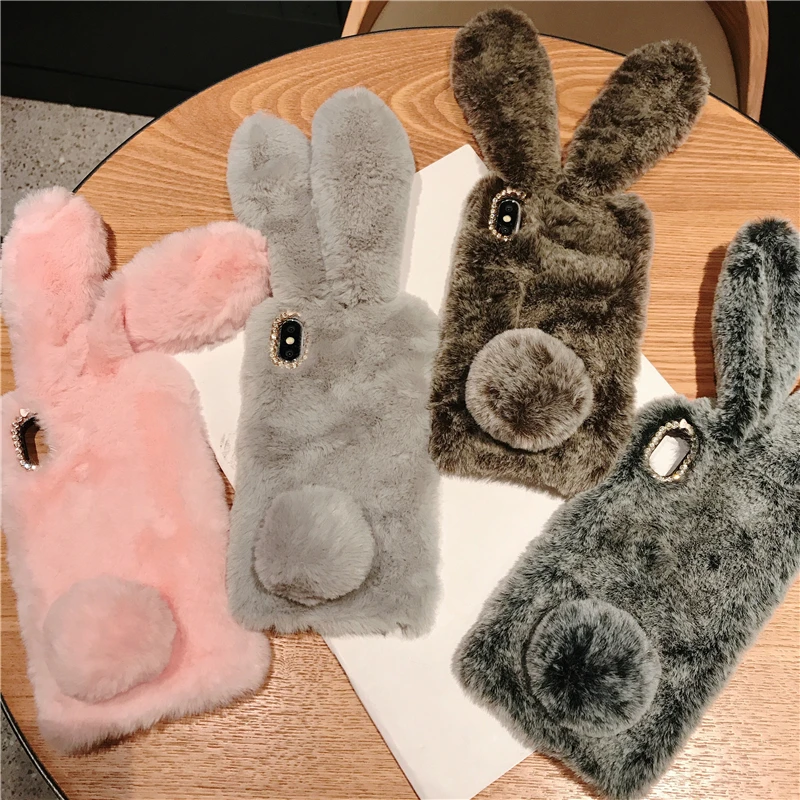 Плюшевый чехол из кроличьего меха для IPhone SE 2022 12 11 13 Pro X...