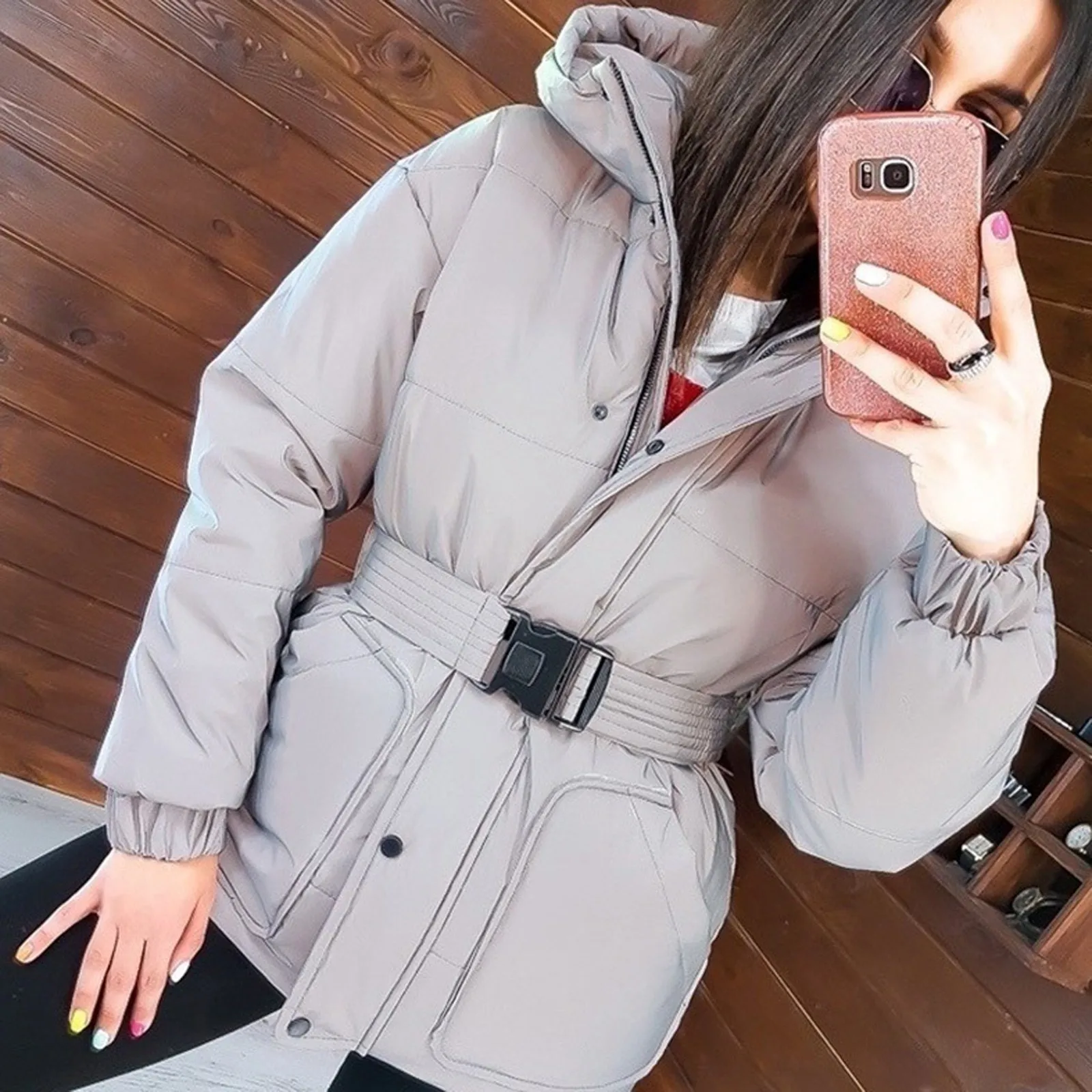 Новинка 2020, светоотражающая куртка с капюшоном и поясом, женская ...