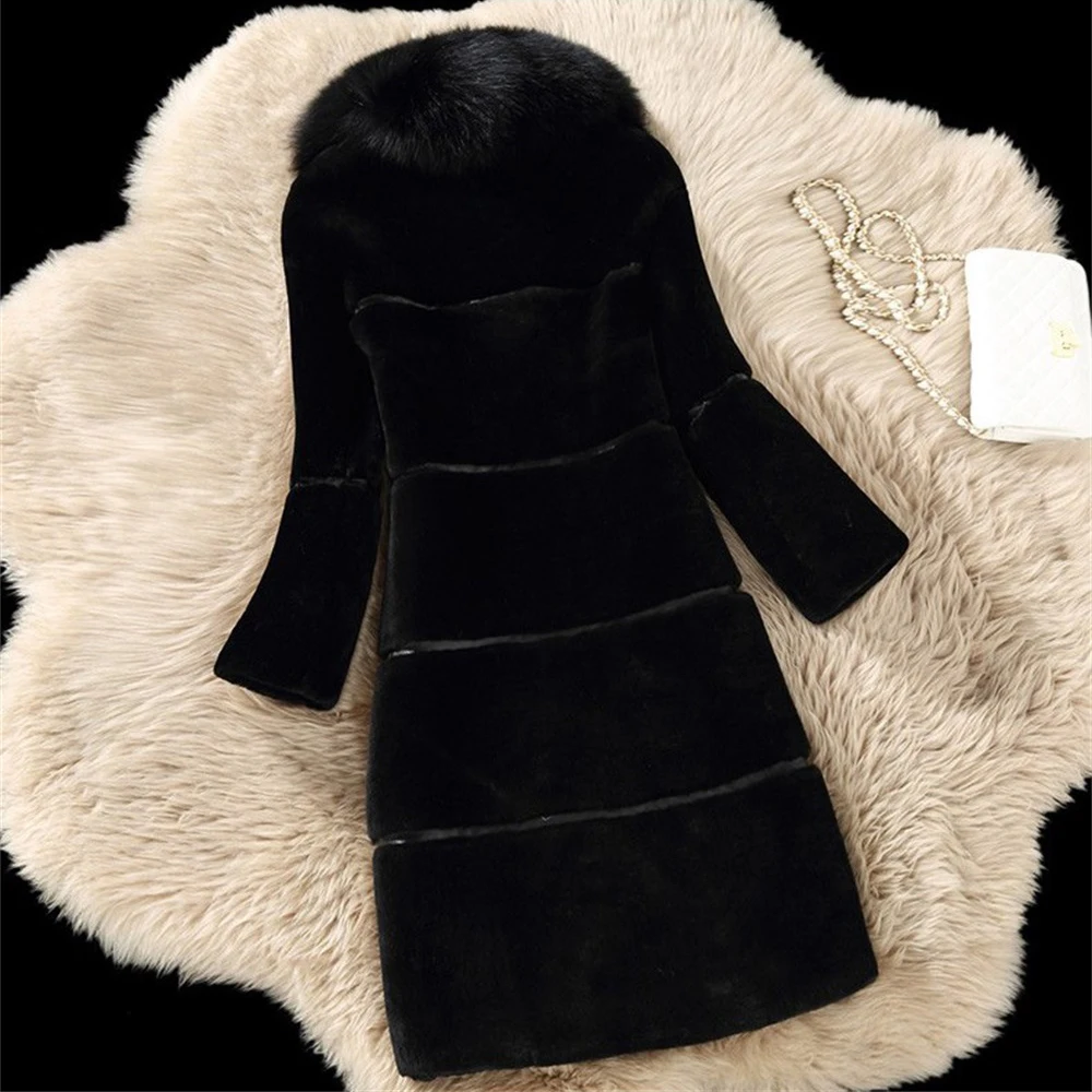 Шуба женская из искусственного меха, толстая длинная модная верхняя одежда с воротником из искусственного меха лисы, большой размер 5XL, зима
