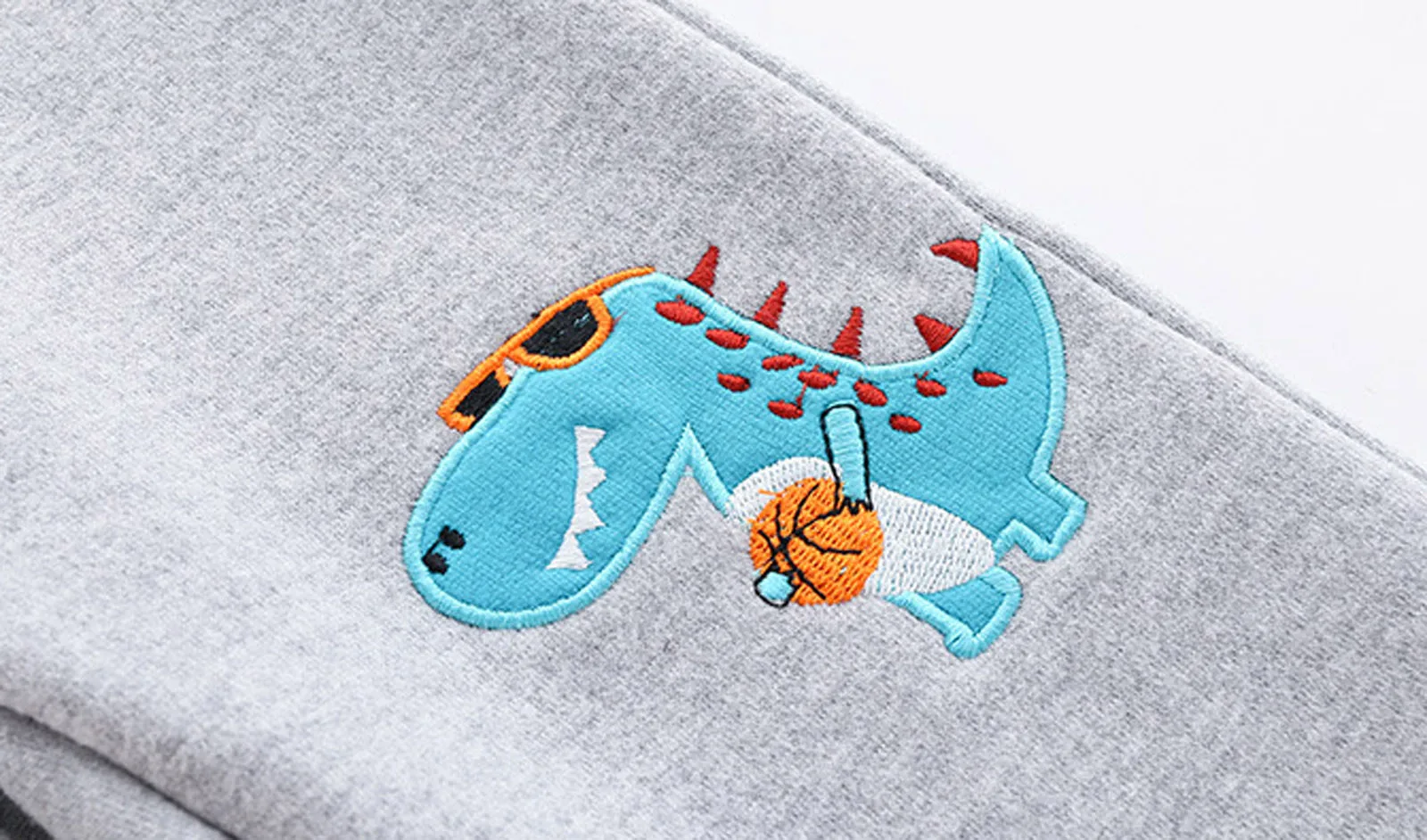 Модные осенне-зимние теплые спортивные брюки для маленьких мальчиков с мультипликационным принтом динозавра, детские спортивные штаны # g4