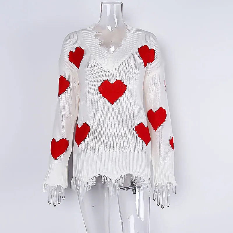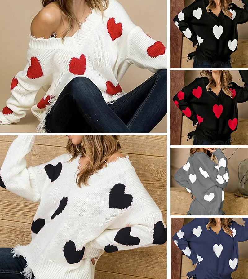 Свитер в европейском стиле с сердечками, Женский пуловер с V-образн...