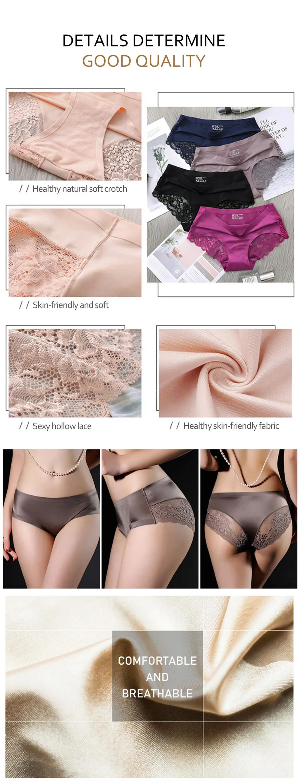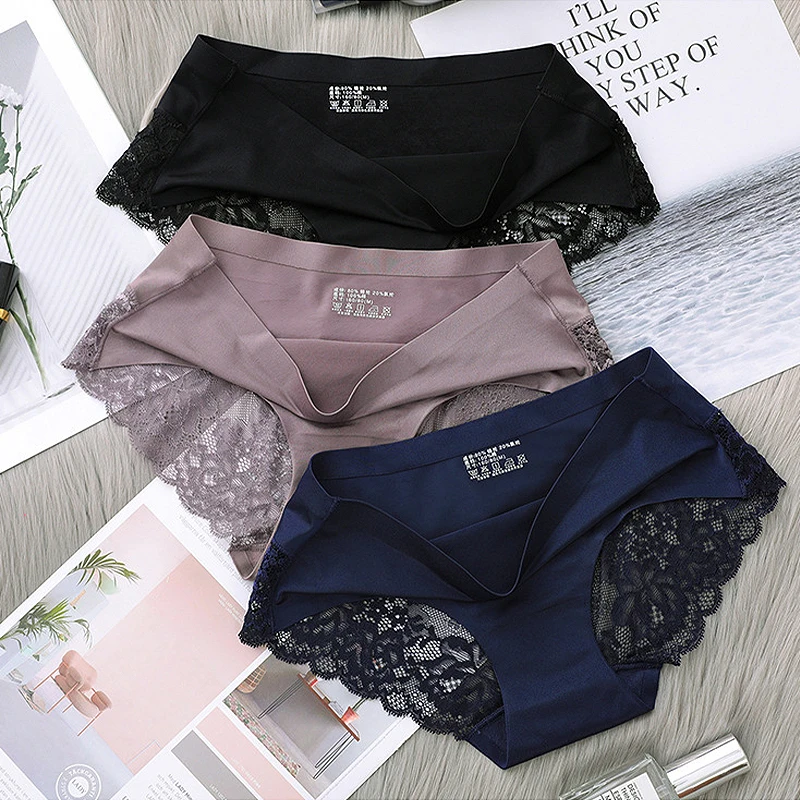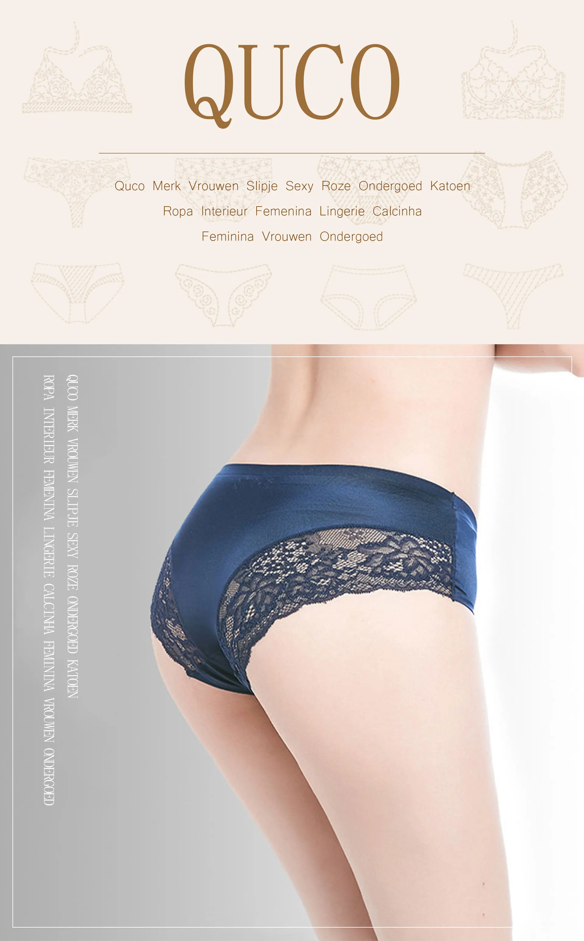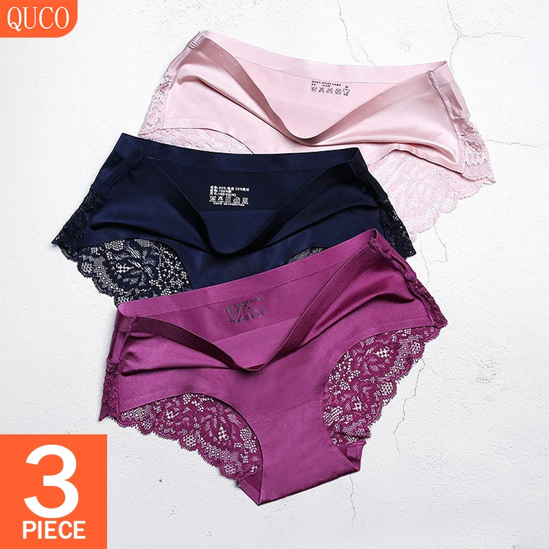 QUCO бренд 3 шт.лот сексуальные женские кружевные трусики комплект нижнего белья с открытой Трусы бесшовное нижнее белье однотонные женские нейлон с низкой посадкой, эротическое белье