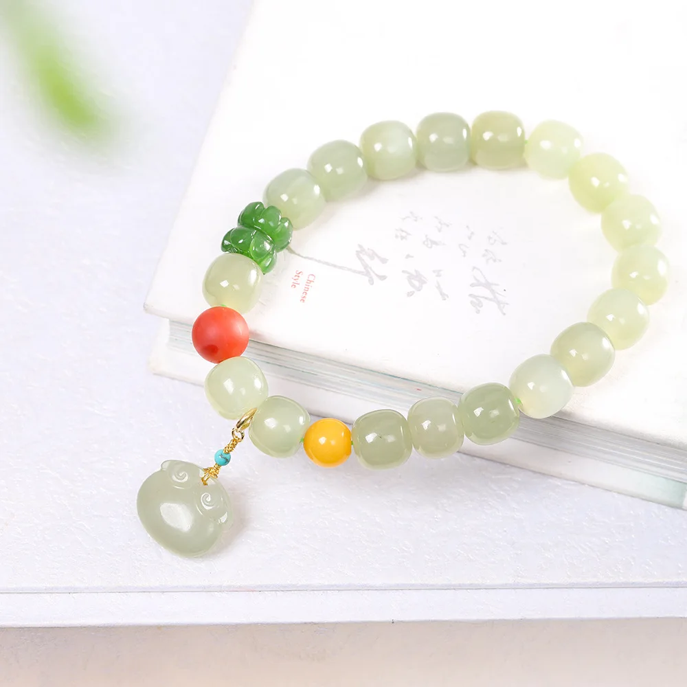 Uglyless вставку внутрь эластичного ремешка Бисер браслеты из драгоценных камней для Для женщин хотанского Jade Jasper Агат Янтарный Браслеты Настоящее серебро 925 в этническом стиле драгоценный камень
