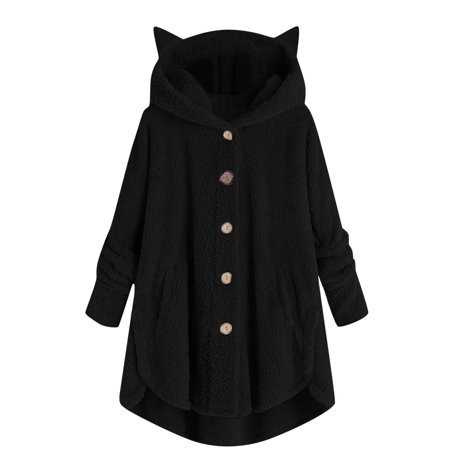 Размера плюс модный плюшевый свитер с кошачьими ушками, повседневное зимнее теплое пальто с капюшоном, женская уличная одежда, женские блузы с длинным рукавом, джемпер