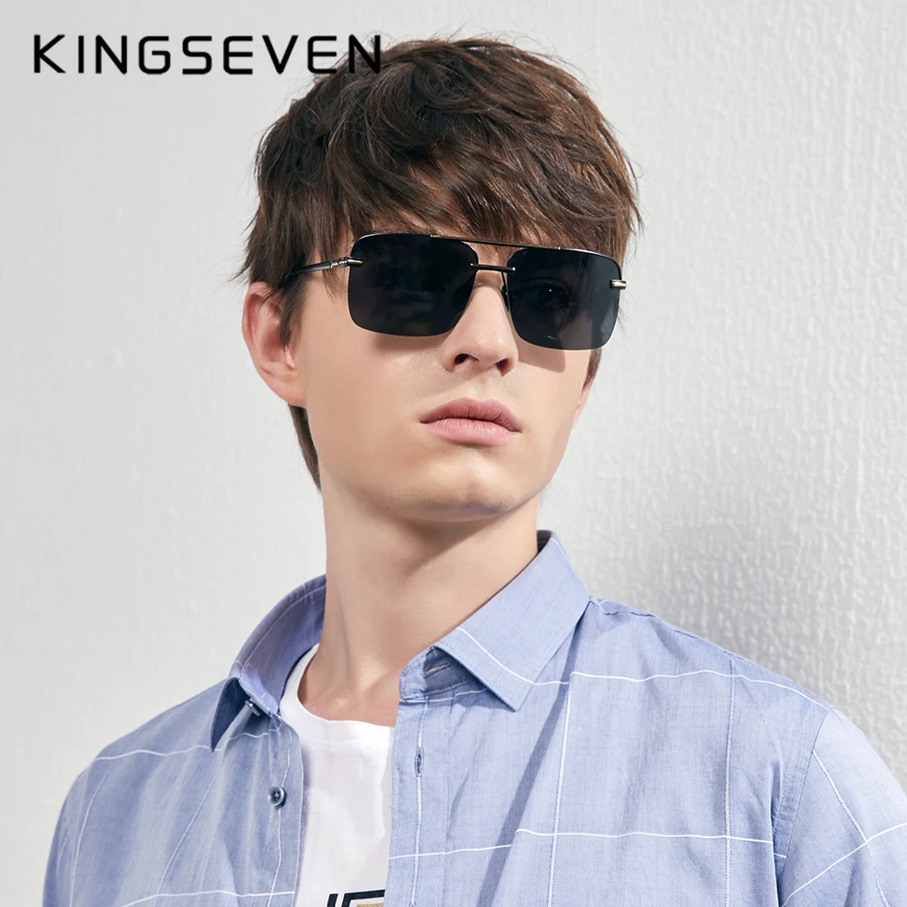 Солнцезащитные очки Мужские KINGSEVEN, квадратные, без оправы, с зе...