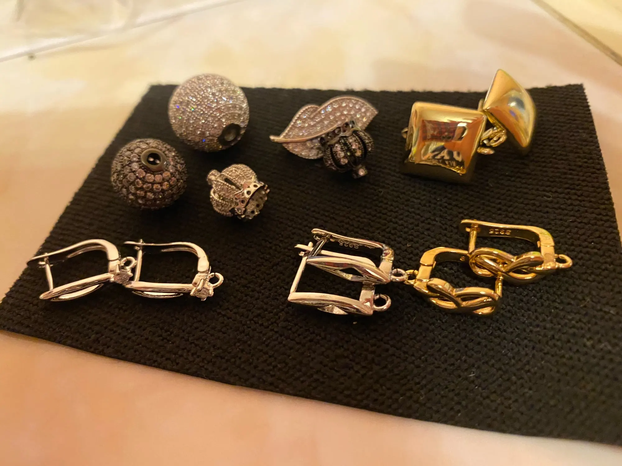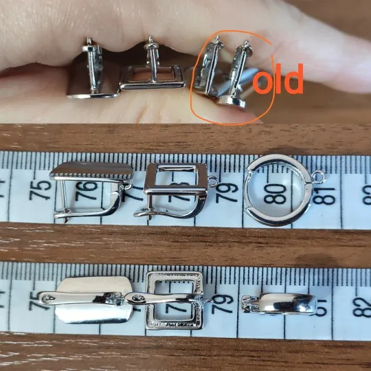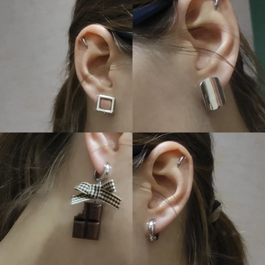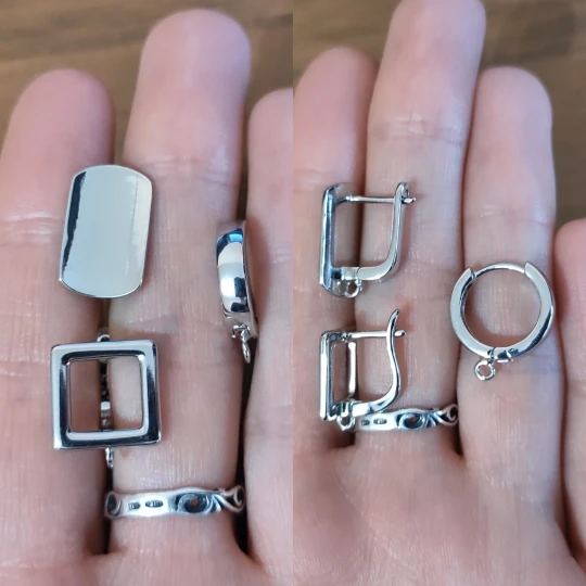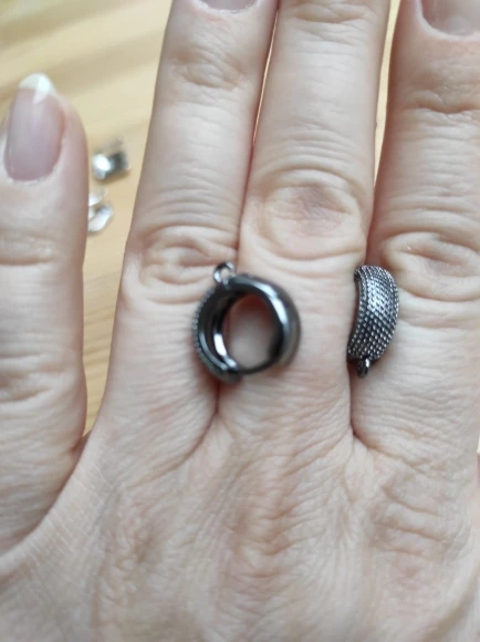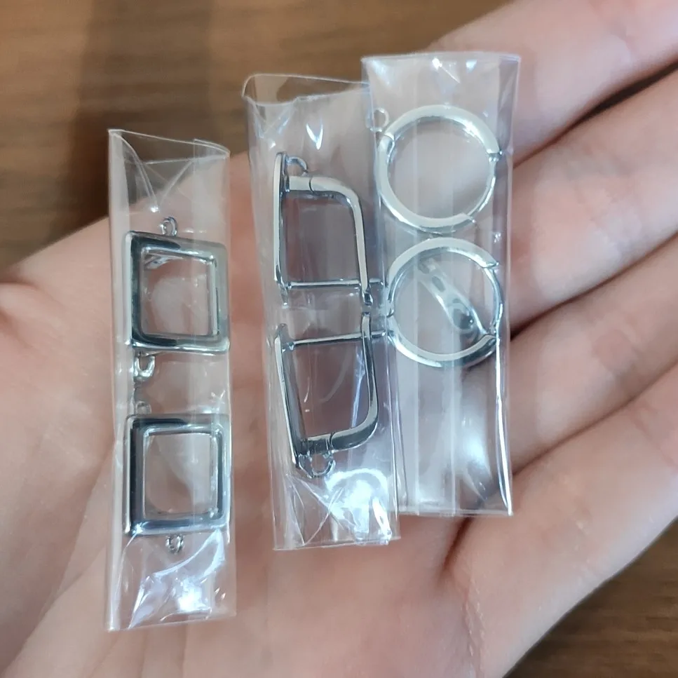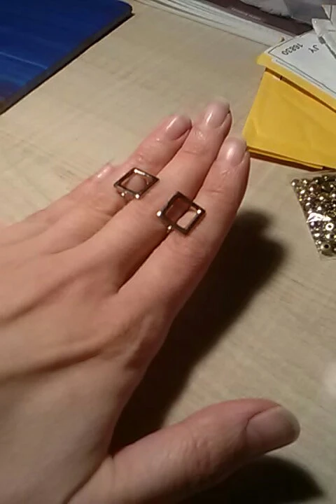 Купила 3 пары за $3.4. Хорошенькие, все трое понравились. В первую очередь потому, что штырь для уха короче, чем в предыдущих заказанных, из-за этого лучше и красивее в ушах сидят. Швензы в виде колец ожидала потоньше. Квадраты вообще крутые, внутри выпуклые. Изогнутые внутрь овалы немного крупнее, чем мне казалось по фото.