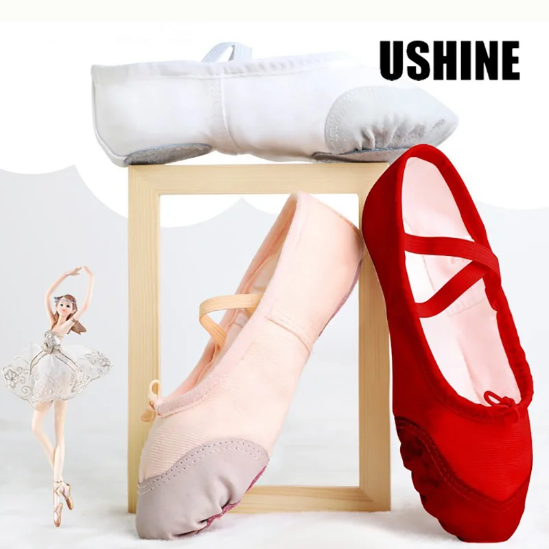 Плоские тапочки USHINE для йоги, спортзала, белые, розовые, белые, черные парусиновые балетные танцевальные туфли для девочек, детей, женщин, учителя, балерины