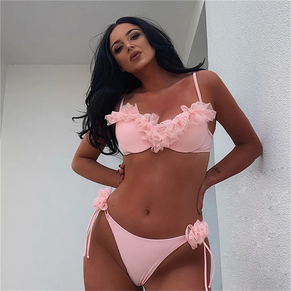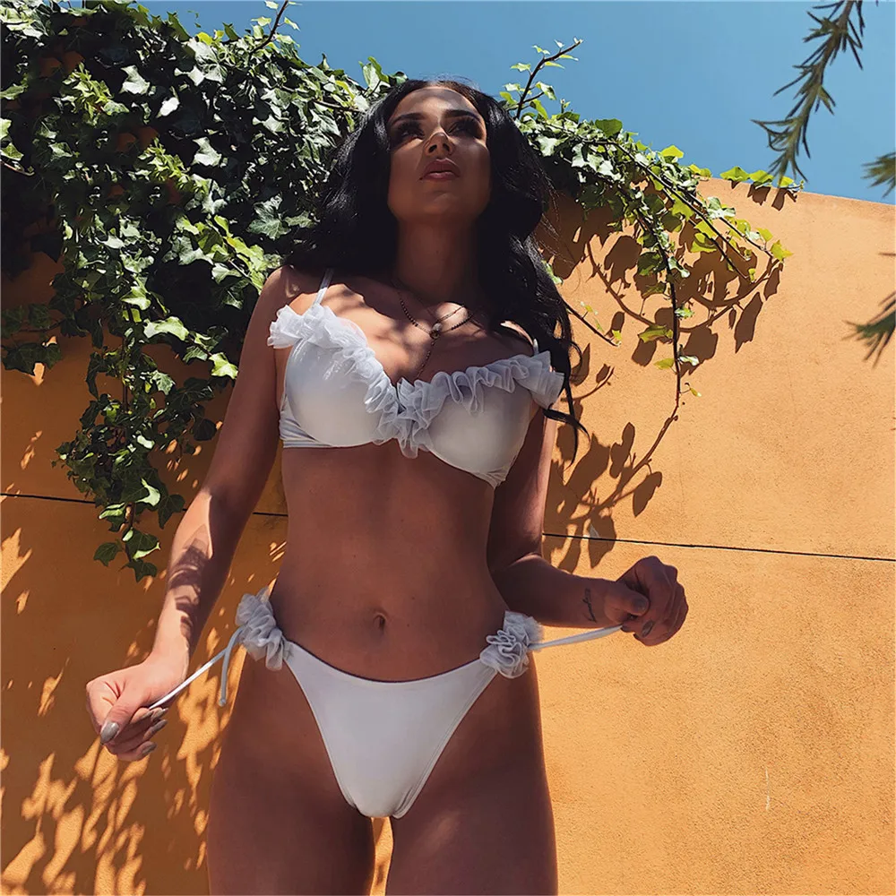 Сексуальное бикини из двух частей женский купальник бикини, купальный костюм с оборками, ванный комплект, пуш-ап, купальник для женщин, пляжная одежда Maillot De Bain