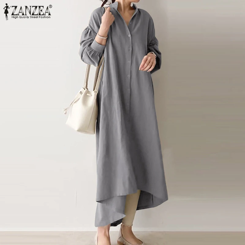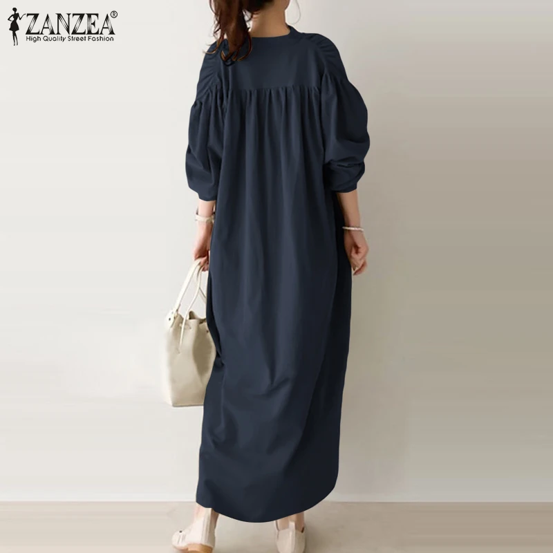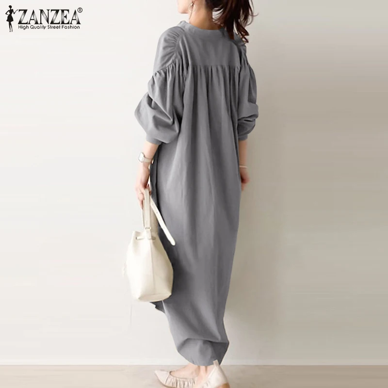 ZANZEA 2022 Стильное однотонное платье макси женский весенний сараф...