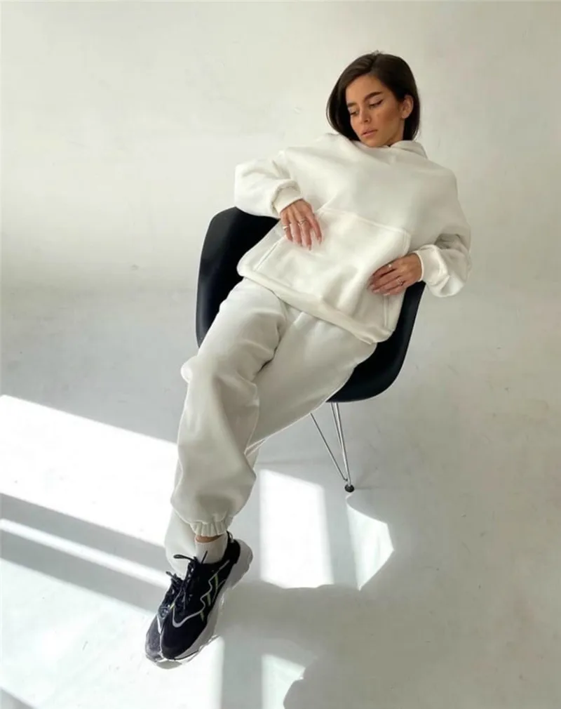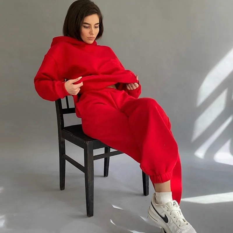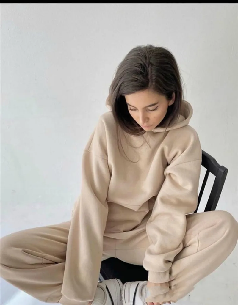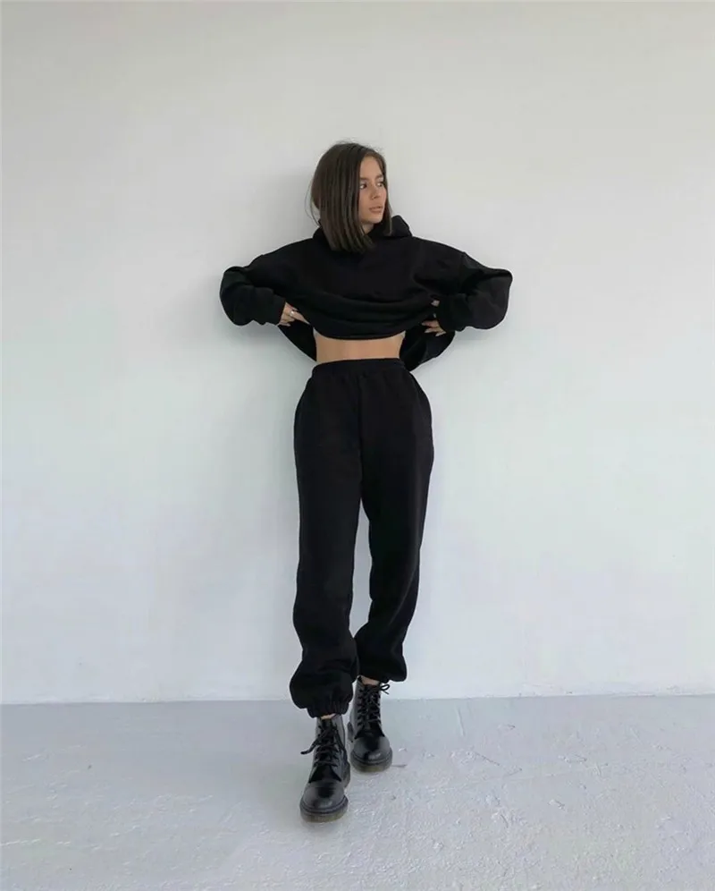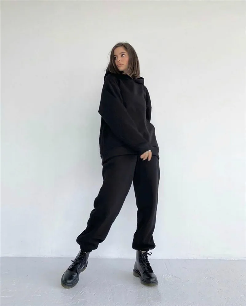 Комплект из 2 предметов, женский спортивный костюм на весну-осень, однотонная толстовка с капюшоном, топ и длинные брюки, повседневный Женский комплект, модная спортивная одежда 100% новый товар высокого качества. Без следов удовольствия Стиль: Модный, удобный Цвет: как на изображении
