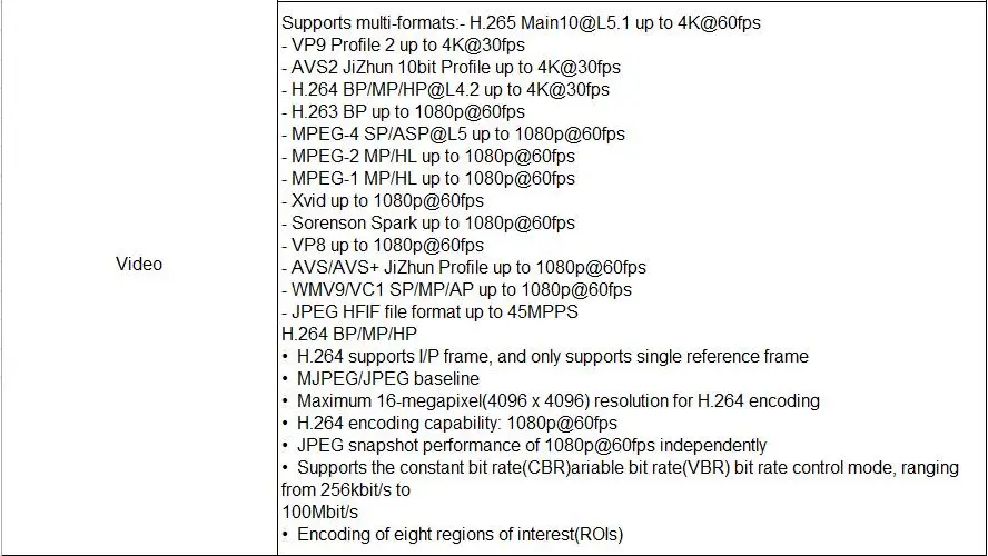 Поддержка: H.265, 4K 60pfs, HD 2,0, USB2.0