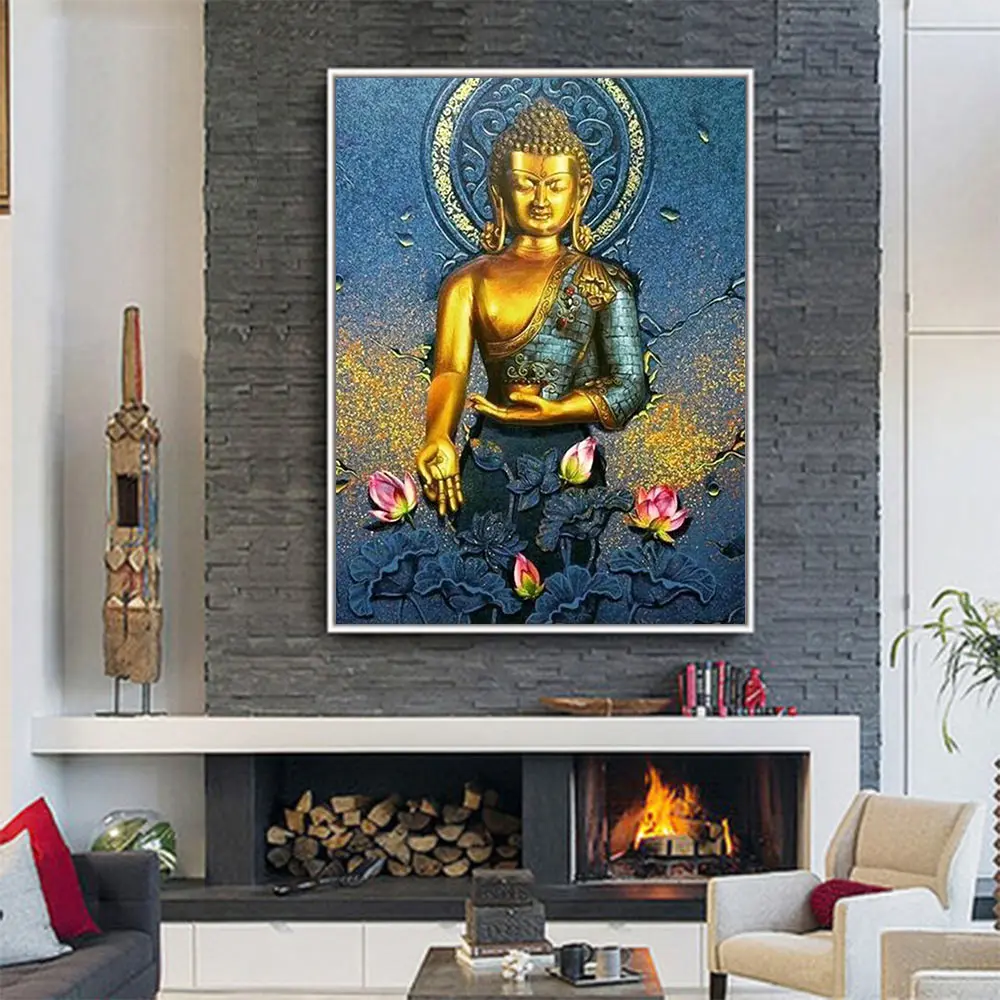 Золотая Статуя Будды Алмазная картина Круглая Полная дрель Портрет религия Nouveaute DIY мозаика вышивка 5D Вышивка крестом