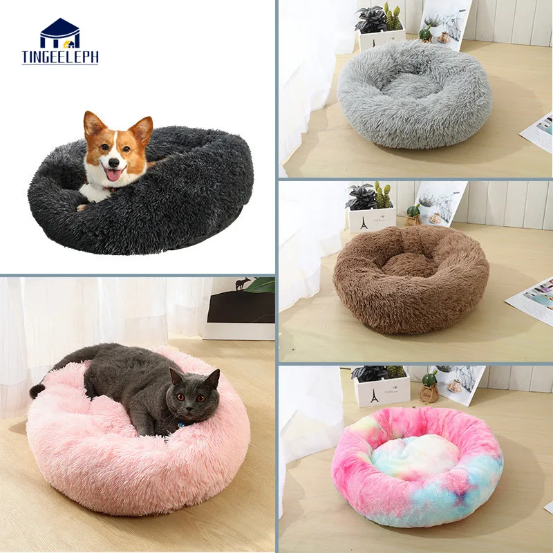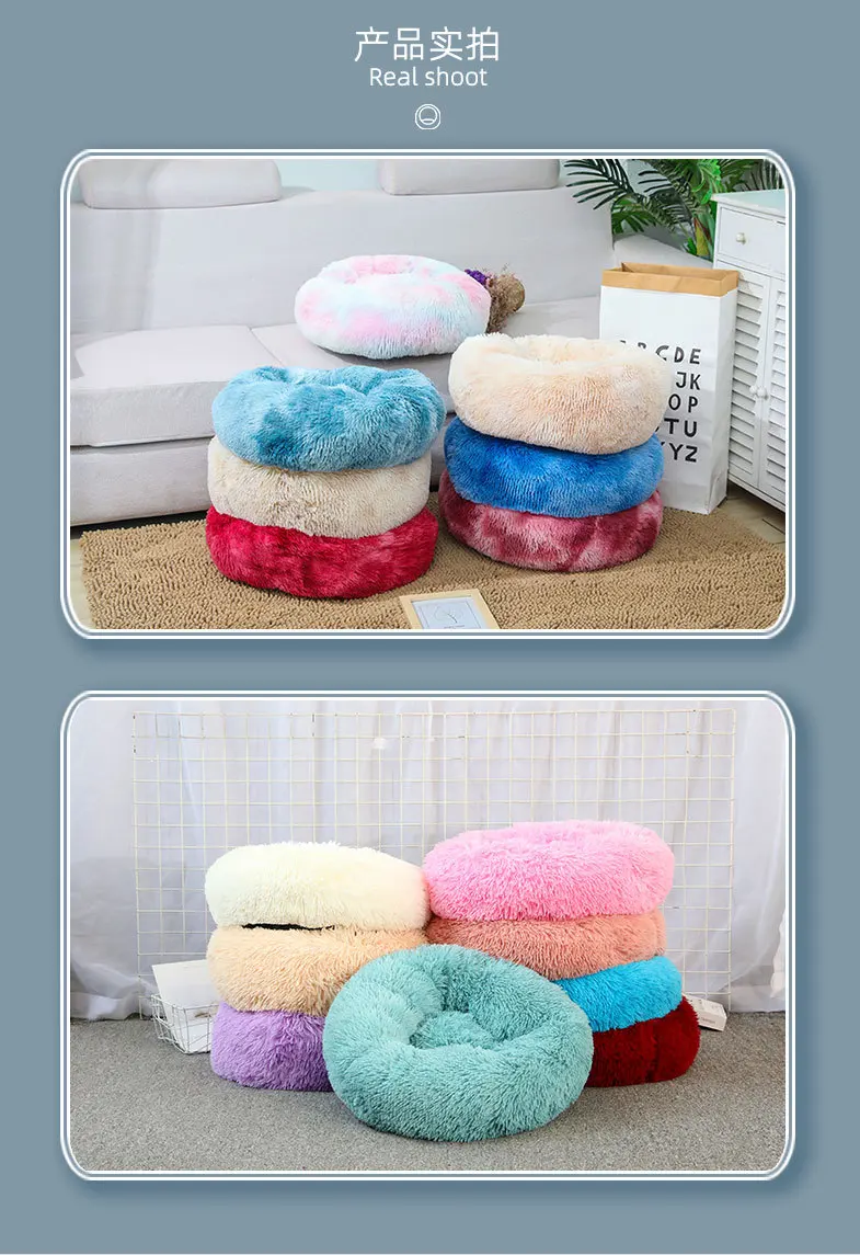 Товары для домашних животных круглые плюшевые пончик кровать любимчика меха пончик Cuddler теплый мягкий собака Кот Подушка кровать успокаивающий кровать на нескользящей подошве