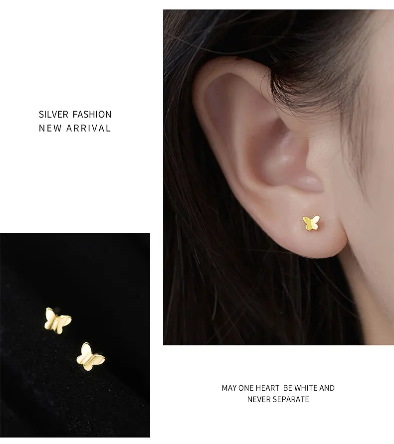 Маленькие простые серьги-гвоздики с летающей бабочкой, элегантные м...