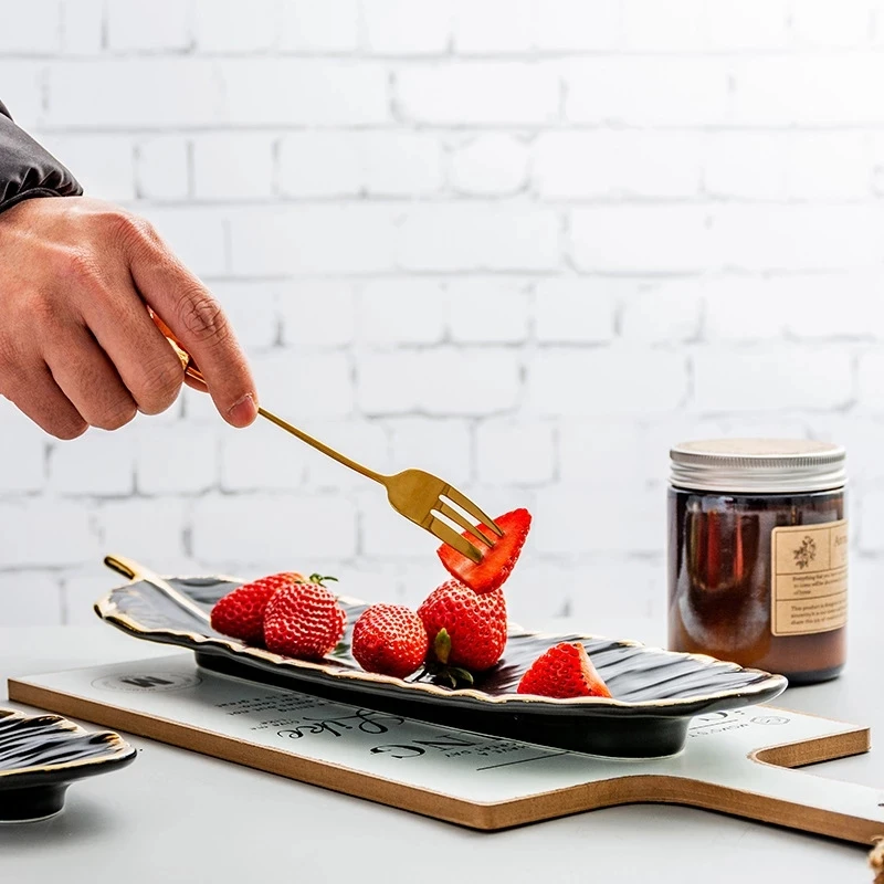 Форма листьев блестящая глазурь белый цвет керамическая тарелка с золотым ободком ювелирные изделия десерт фарфоровая посуда Косметика кольцо перо лоток