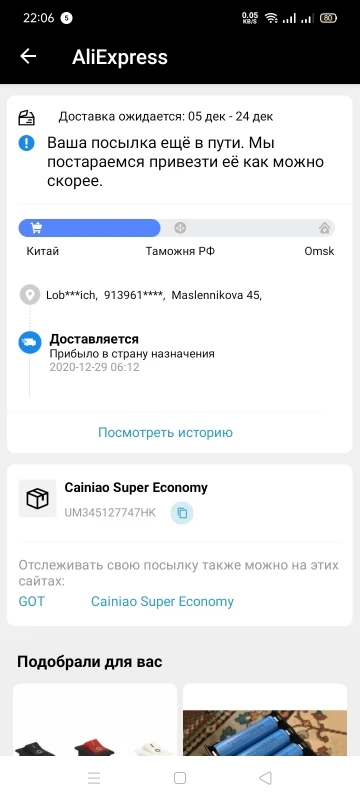 Страна: RU Color: 18650 TYPE-C Доставка: Cainiao Super Economy 29.12.2020