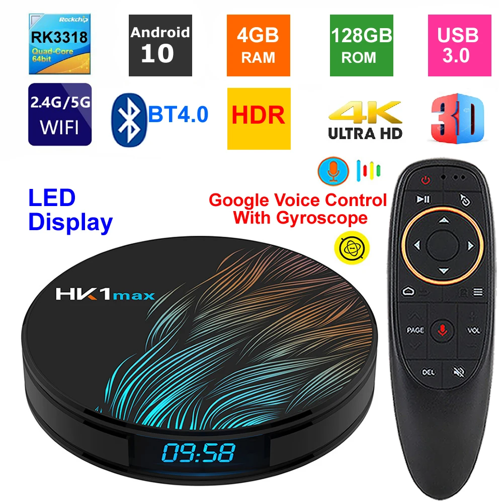 Android 10,0 Smart TV BOX 4 Гб RAM 128 ГБ ROM RK3318 HK1MAX 4K меди...