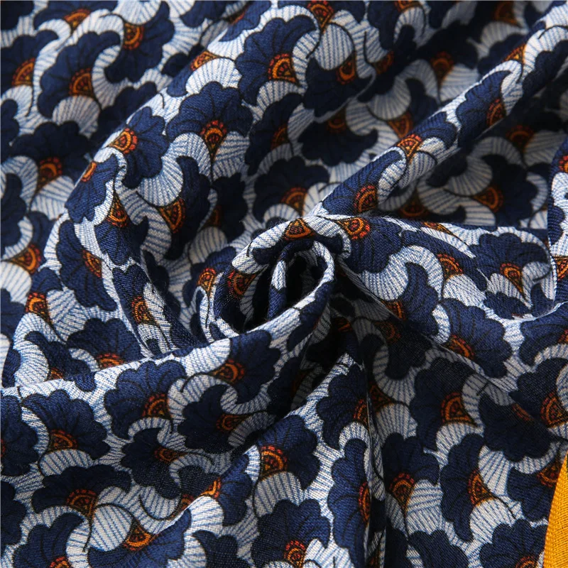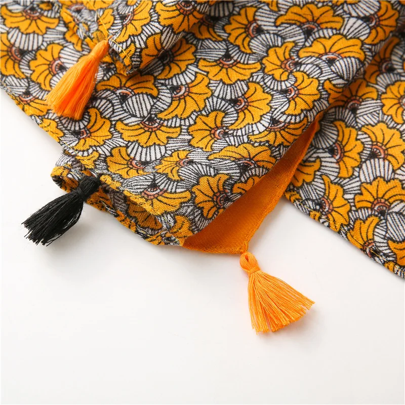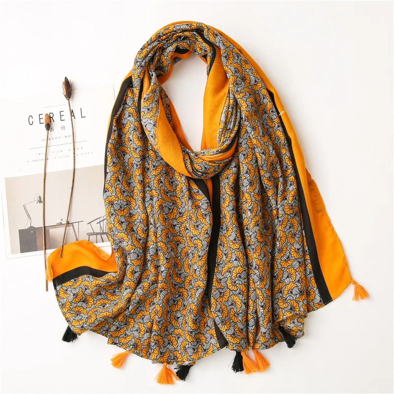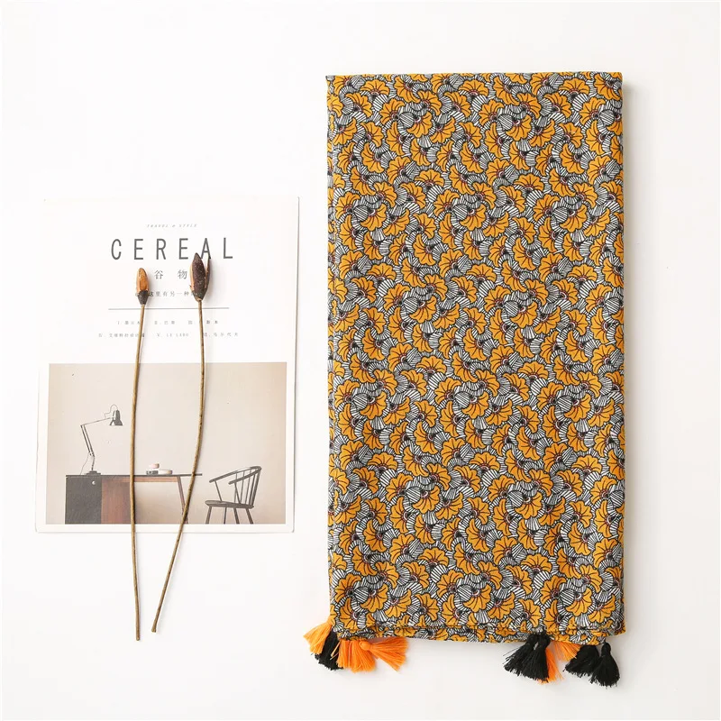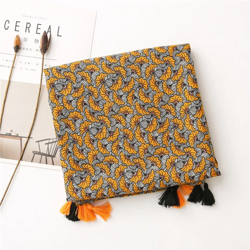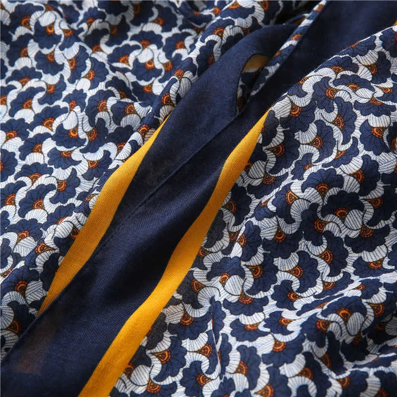 Повязка на голову женская темно-синяя с лепестками и кисточками, шаль из вискозы х 90 см, Осенний шарф, мусульманский хиджаб 180 х 90 см
