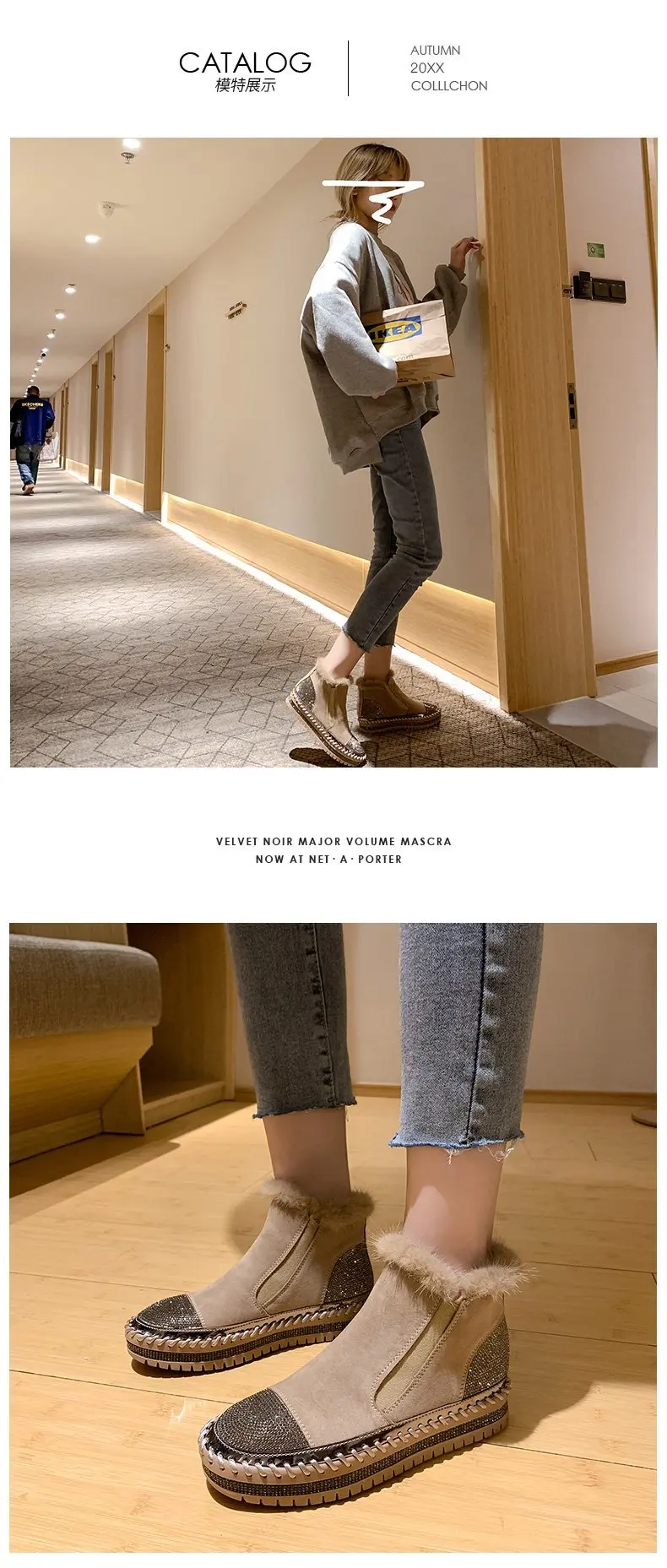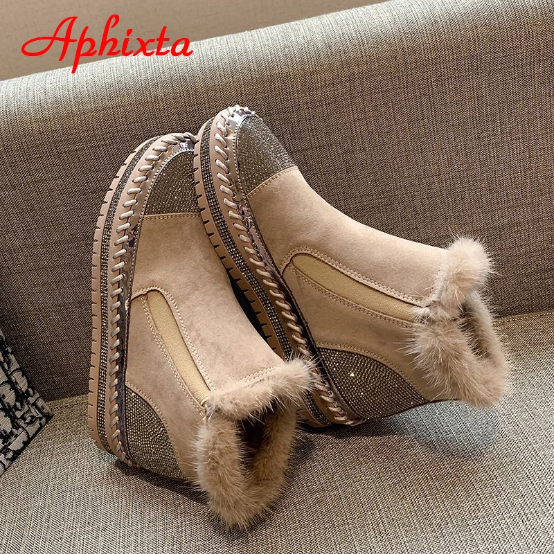 Женские ботинки с натуральным мехом Aphixta, зимние водонепроницаемые ботильоны со стразами, на платформе, с резинкой, на массивной подошве, большой размер 44