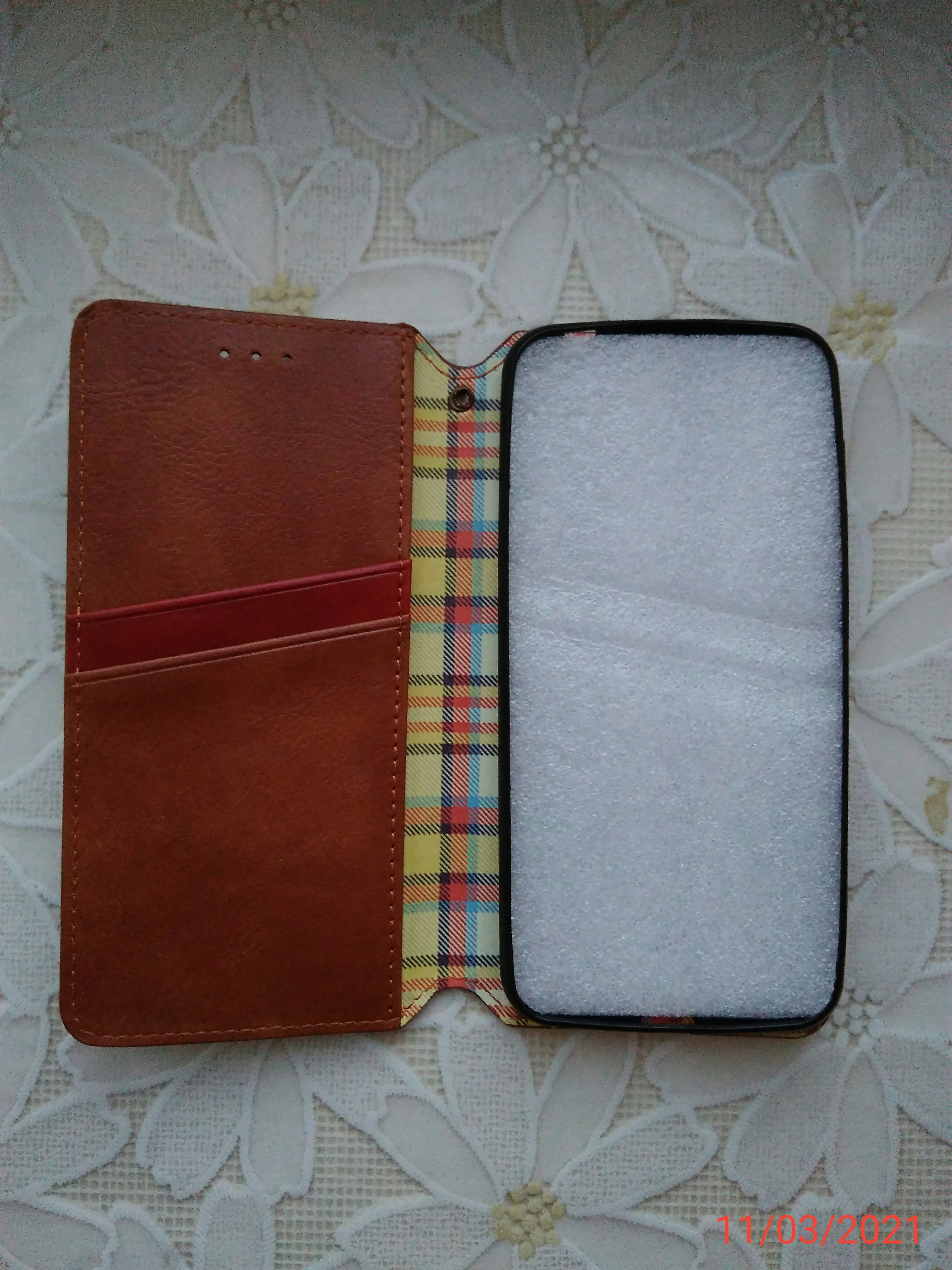 Заказ прибыл довольно быстро - через 2 недели. Материал чехла - ни какая ни кожа, а обычный ДЕРЬМАНТИН. Качество - на 3-ечку. Силиконовый бампер - тоже говно. К тому же, на верхнем торце обложки - зубчатые повреждения, как будто мыши грызли. Своих денег однозначно не стоит! Не видитесь на красивые фотки на фоне рулонов натуральной кожи.