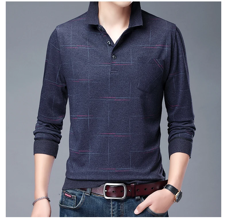 2021 Новая модная дизайнерская брендовая мужская рубашка поло с отложным воротником, мужские повседневные клетчатые топы из спандекса с длинными рукавами, осенняя мужская одежда