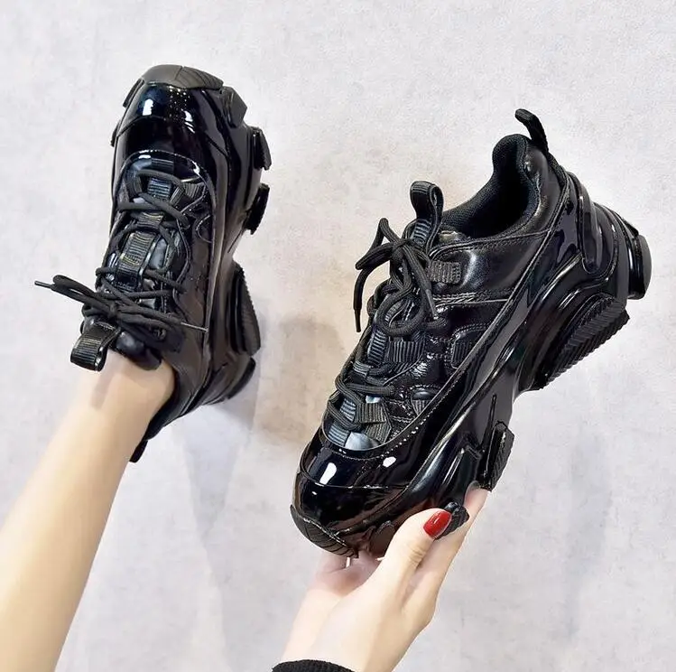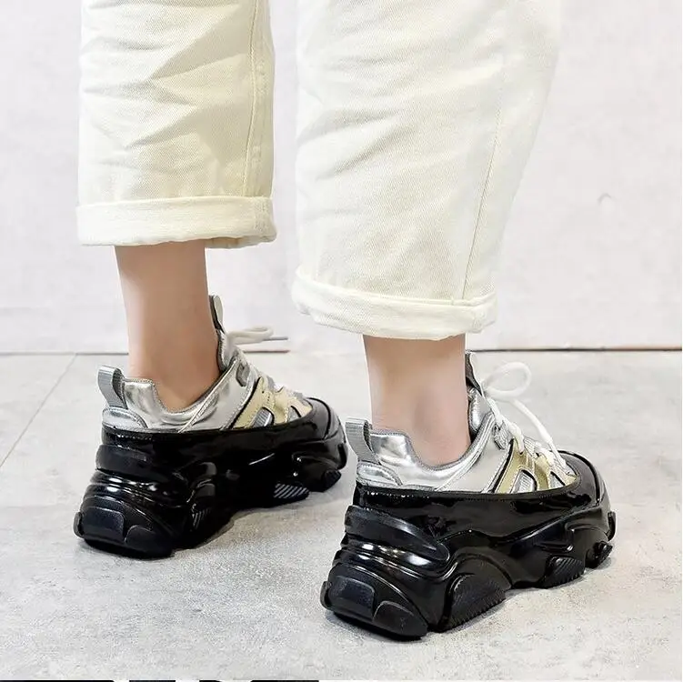 Женские массивные кроссовки на платформе, повседневные кожаные туфл...