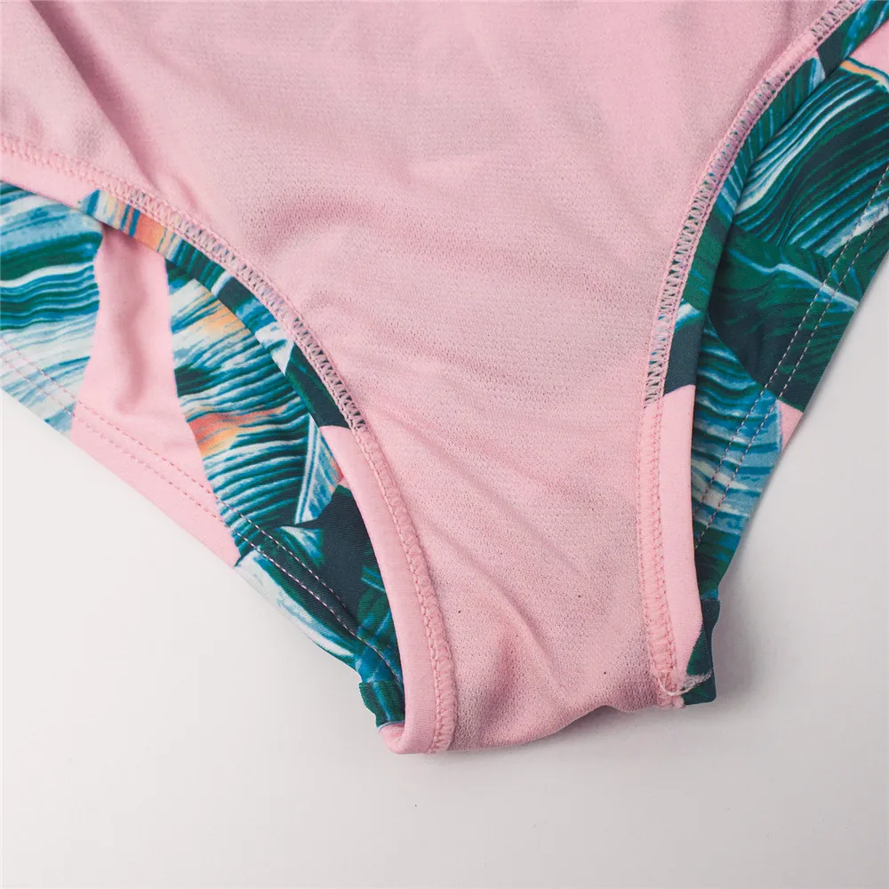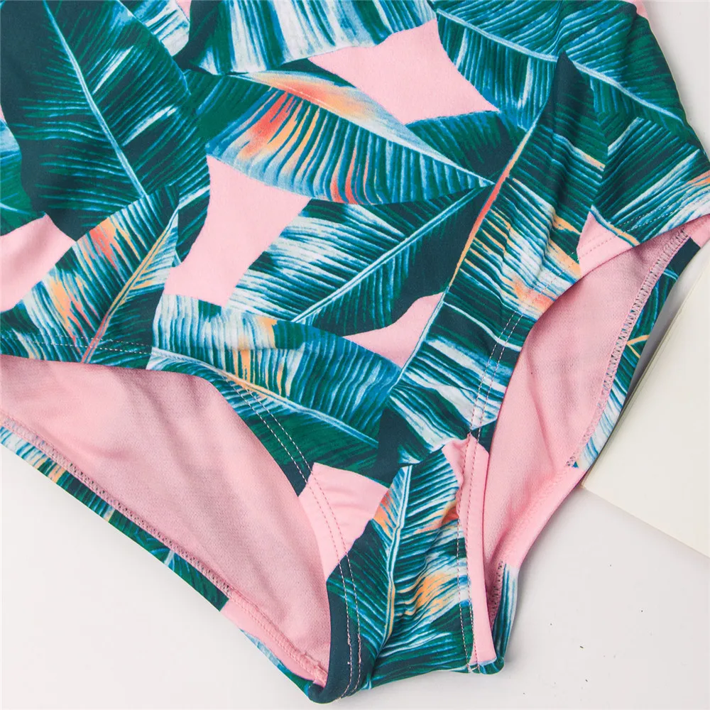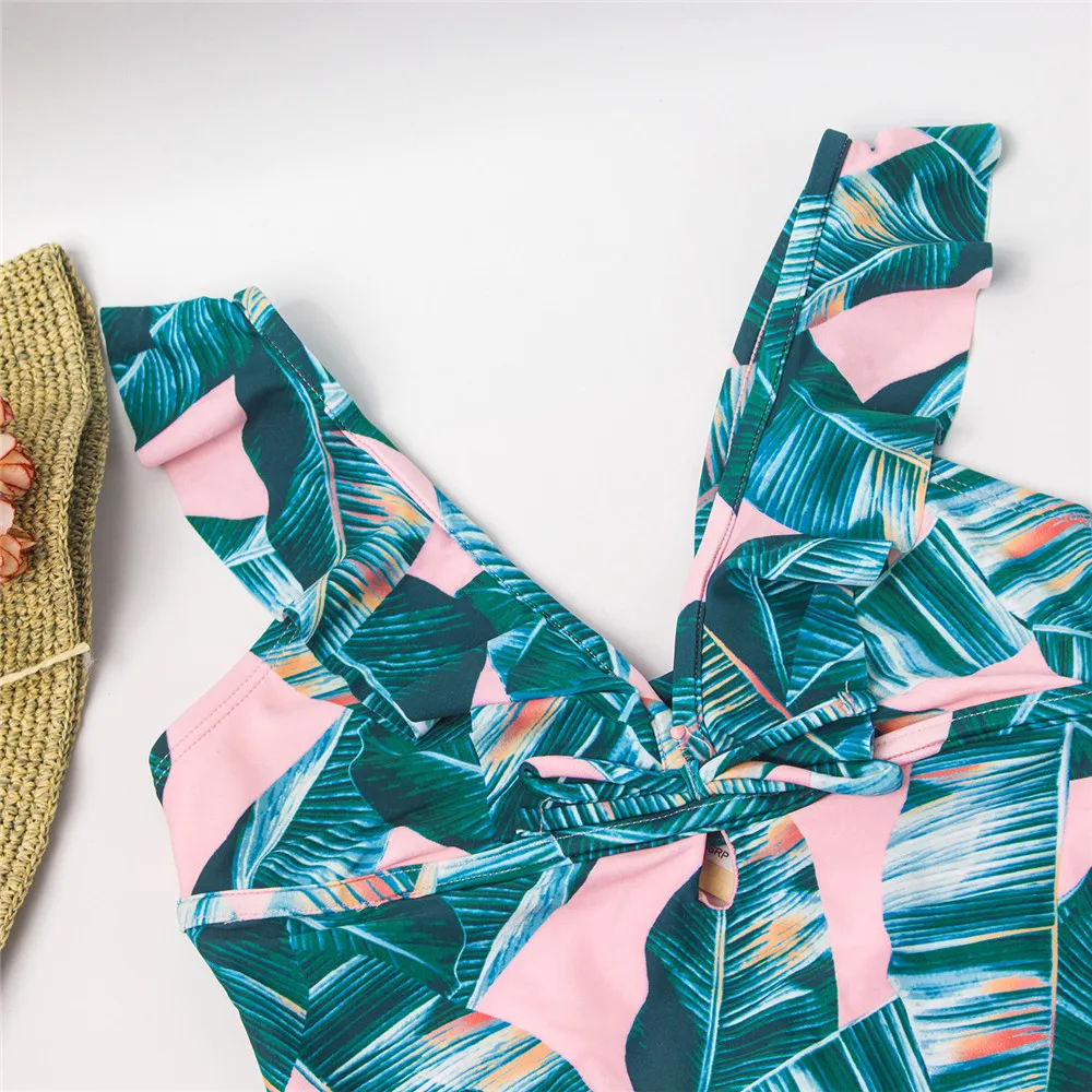 2021 слитный купальник для девочек с принтом листьев, бандажный купальник Falbala, летний купальный костюм для детей, монокини A256