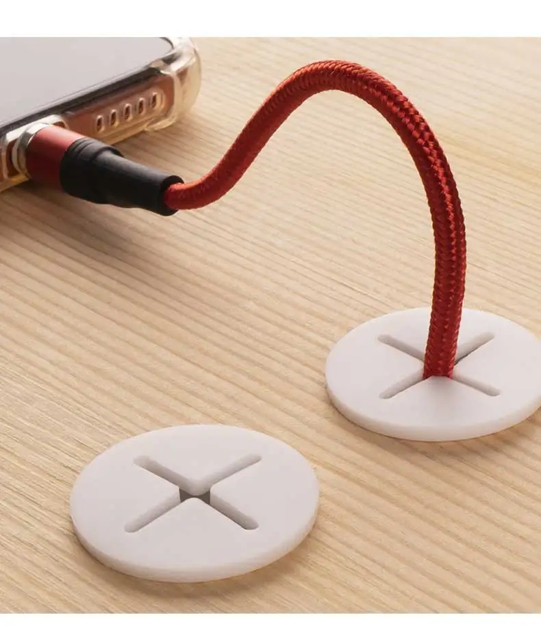 Втулка для кабеля, Гибкая силиконовая Крышка отверстия для кабеля, органайзер для проводов, Сквозной кабель, белая круглая прокладка