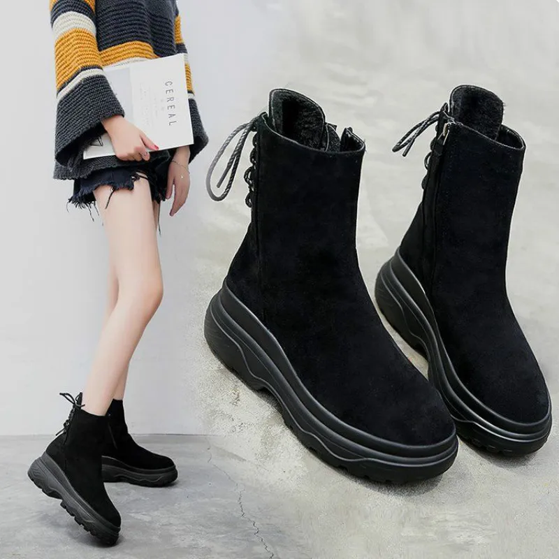 Ботинки мартинсы женские в британском стиле, короткие ботинки на платформе, короткие ботинки на толстой подошве из хлопка, женские ботинки, хлопковая обувь для снега