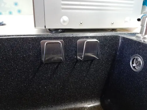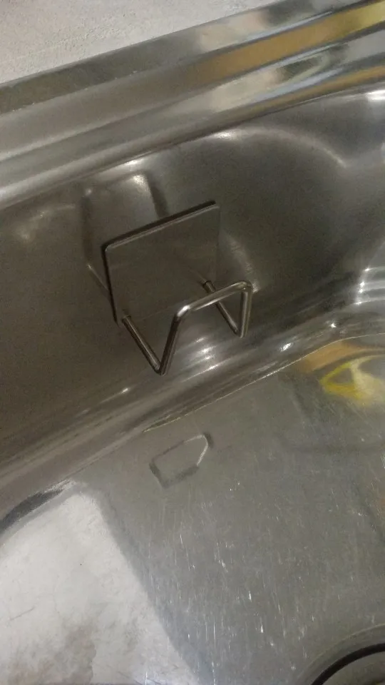 Очень удобный крючек, полезная вещь! На удивление, сделан качественно и действительно из нержавейки! Сама пластина - полированная нерж. Крючек из нерж проволоки. Хорошая идея, крепишь в раковине и с губки пена на столешницу не капает, все в раковину. Рекомендую!