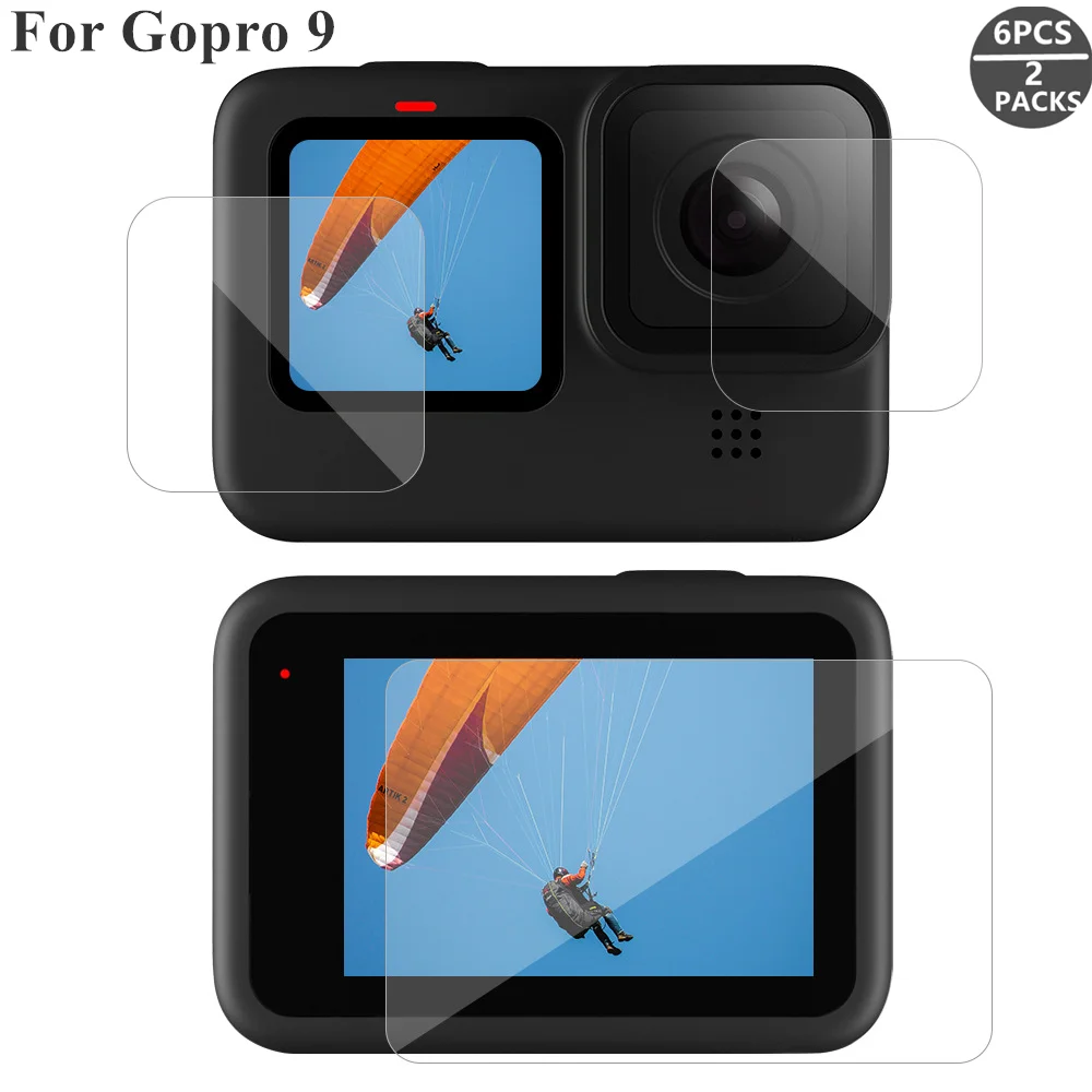 Черное закаленное стекло для GoPro Hero 10 9 Защита для экрана Защитная пленка для объектива Защитная пленка для Gopro9 Go Pro 9 Аксессуары для камеры