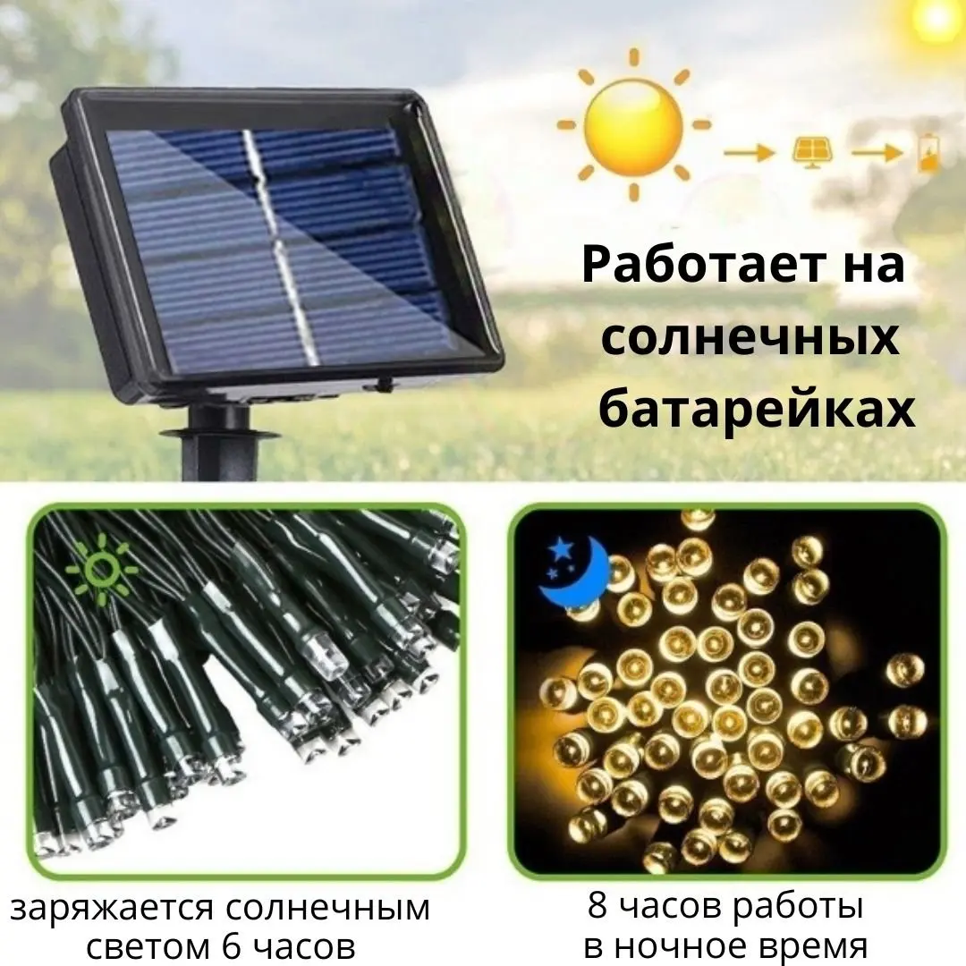 Гирлянда на солнечной батарее, 2 режима, 22 м, 200 светодиодов