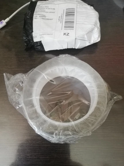 Отличный Продавец! 3 разных посылки прислал в одном пакете! Двусторонний скотч смотрится прекрасно и качественно. В деле пока не проверяла. Понадобится позже. Тогда отзыв дополню. Есть легкий запах. Боковушки клейкие. Прилип к пакетику, в котором приехал. Еще покупала гирлянды для бутылок и концевики на зарядные шнуры. Защита от перегиба. Черный концевик - вместо одного положил 10 штук! За это особая благодарность! Отлично упаковано. Доставка в Украину чуть меньше месяца. Качество хорошее! Уппковка с пупыркой надежная. Рекомендую и благодарю