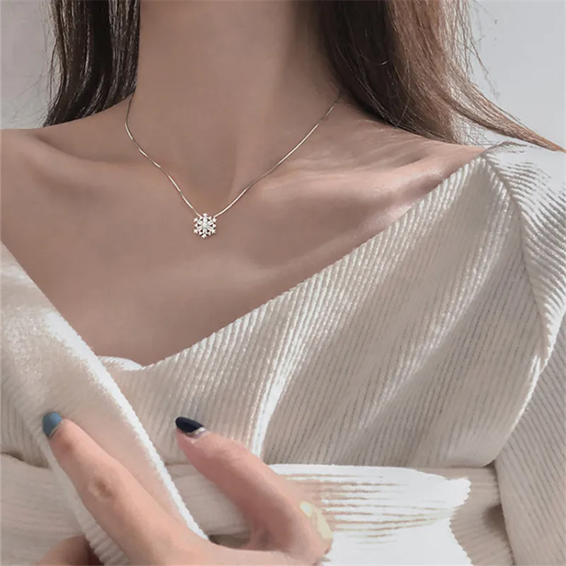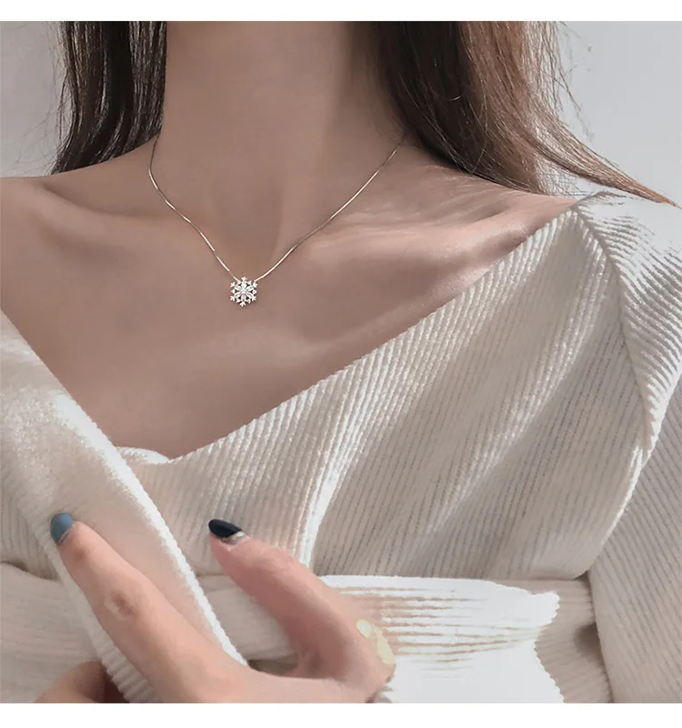 Ожерелье OBEAR с подвеской в виде Снежинки из блестящего циркона, модная цепочка до ключиц, посеребренное ожерелье для женщин, свадебная бижутерия, подарок