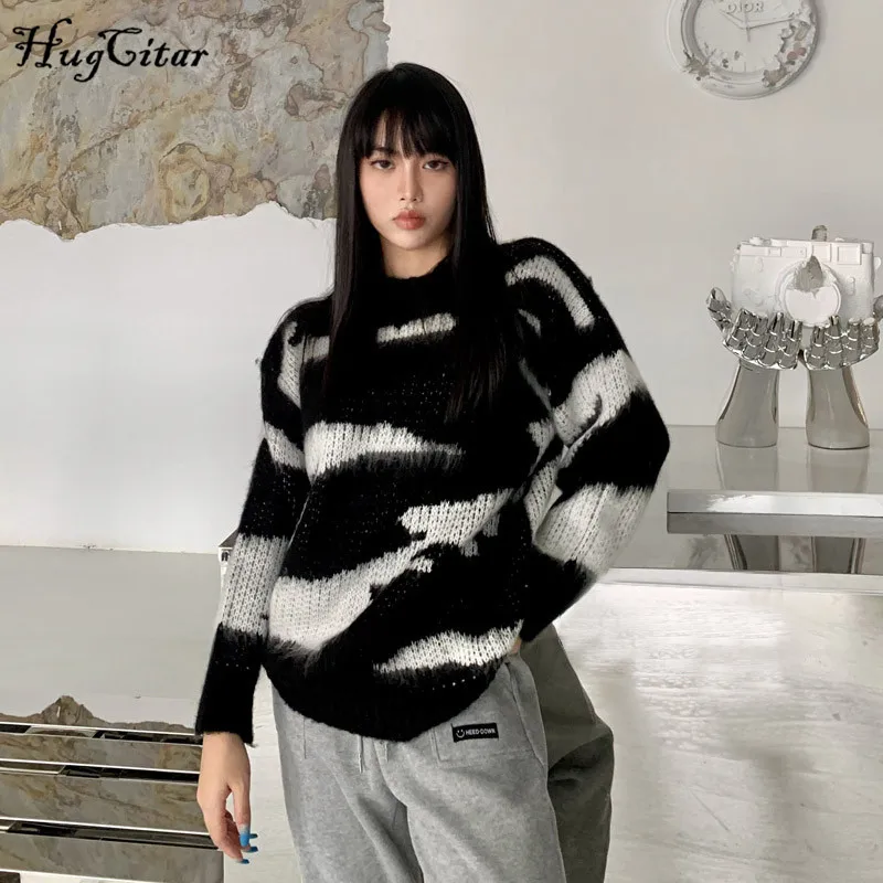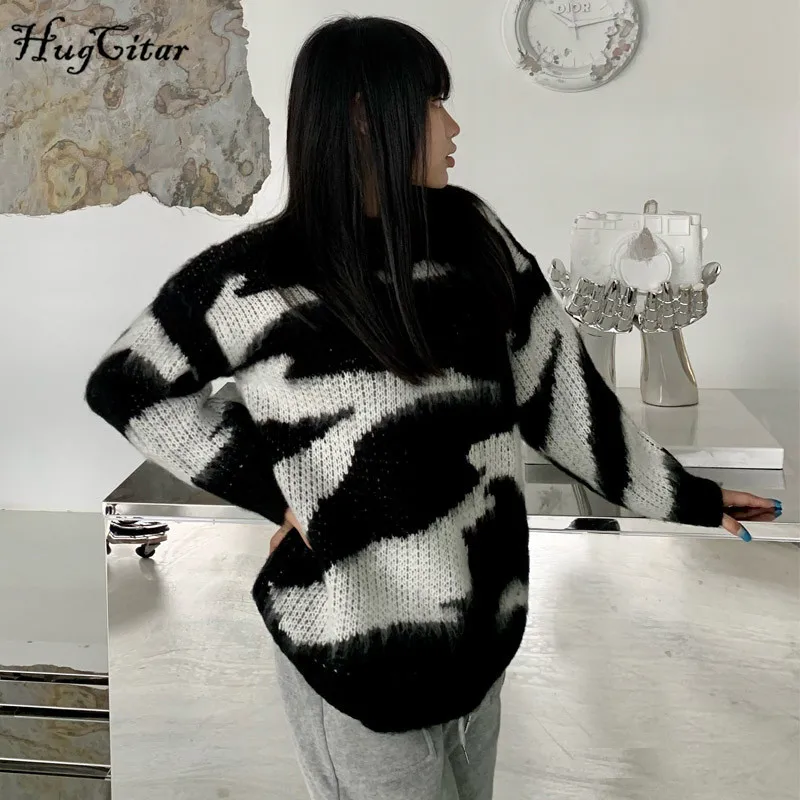 Пуловер Hugcitar женский оверсайз с длинными рукавами, модная уличная одежда, топы, Осень-зима 2020