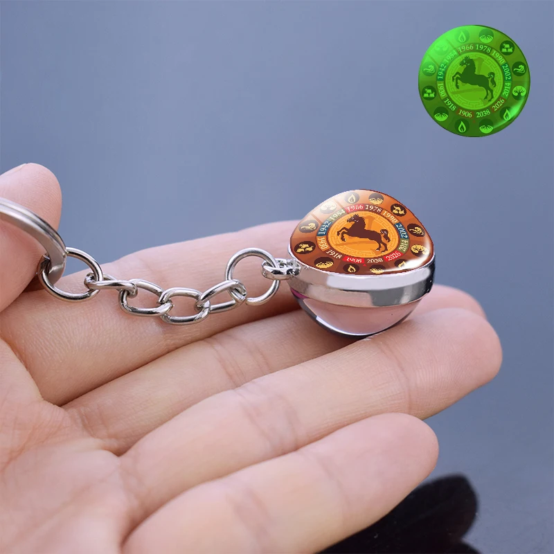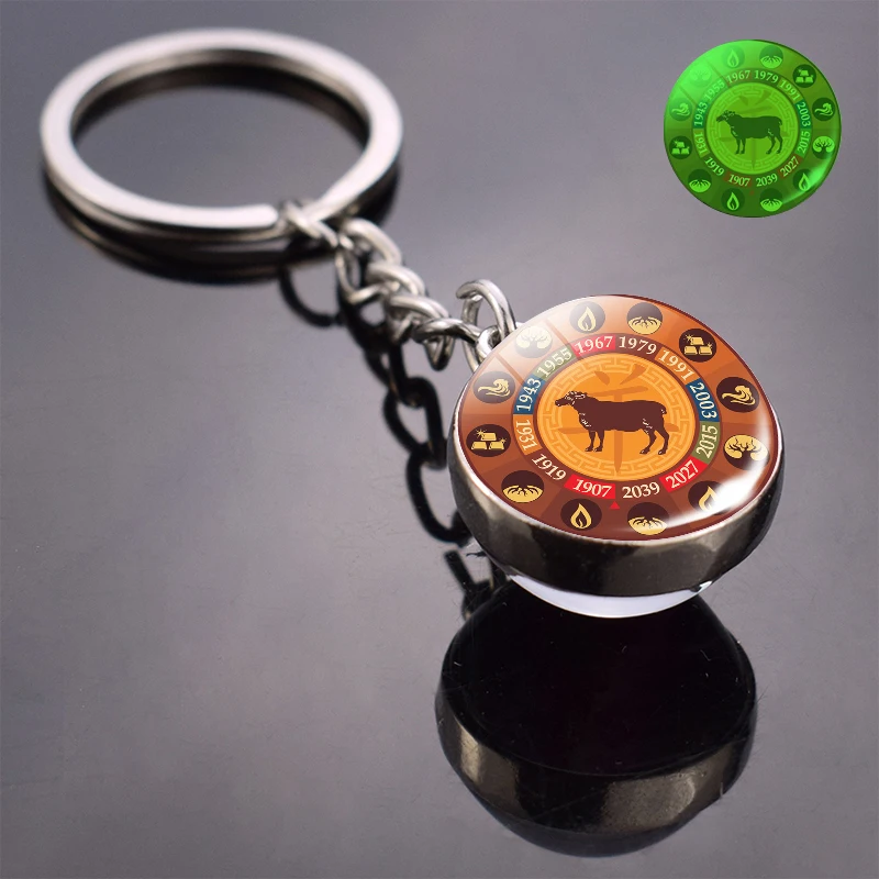 Светящийся Китайский 12 зодиакальный брелок с животными зодиакальная Крыса Бык Тигр дракон петух стеклянный шар люминесцентный брелок для новогоднего подарка