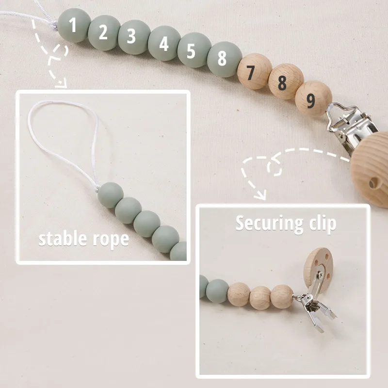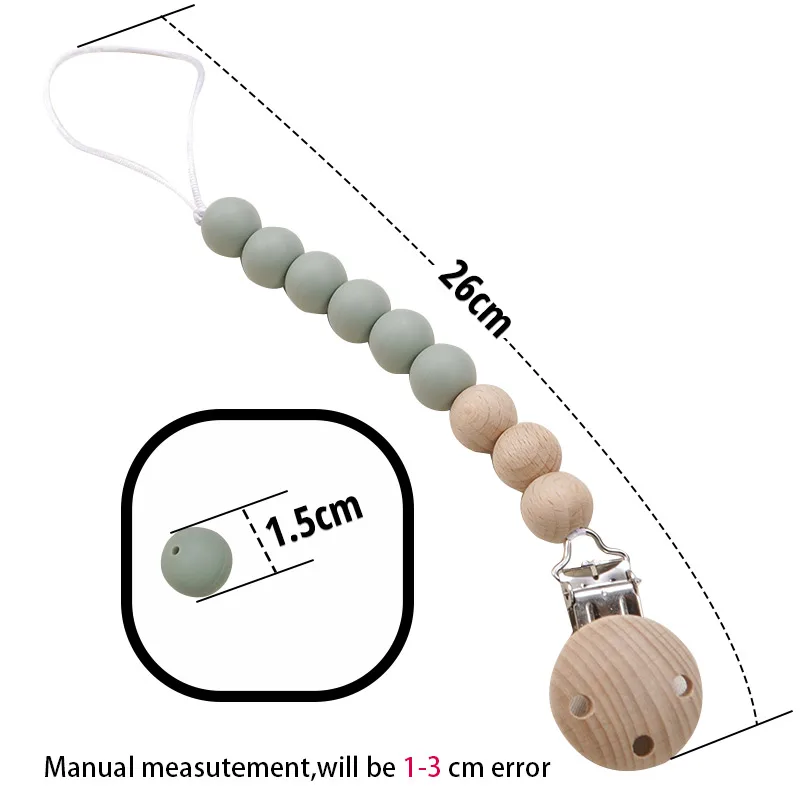 2022 детская цепочка для соски, Круглый Деревянный металлический зажим, Детская силиконовая бусина, уход за полостью рта, подарок для новорожденных, родов, прорезывателя