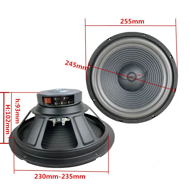10-дюймовый динамик 8 Ом, 255 мм, резьбовой конус для бумажной раковины, 600 Вт, с поролоновым краем, квадратный танцы, KTV, семейный строковый динамик, низкочастотный динамик