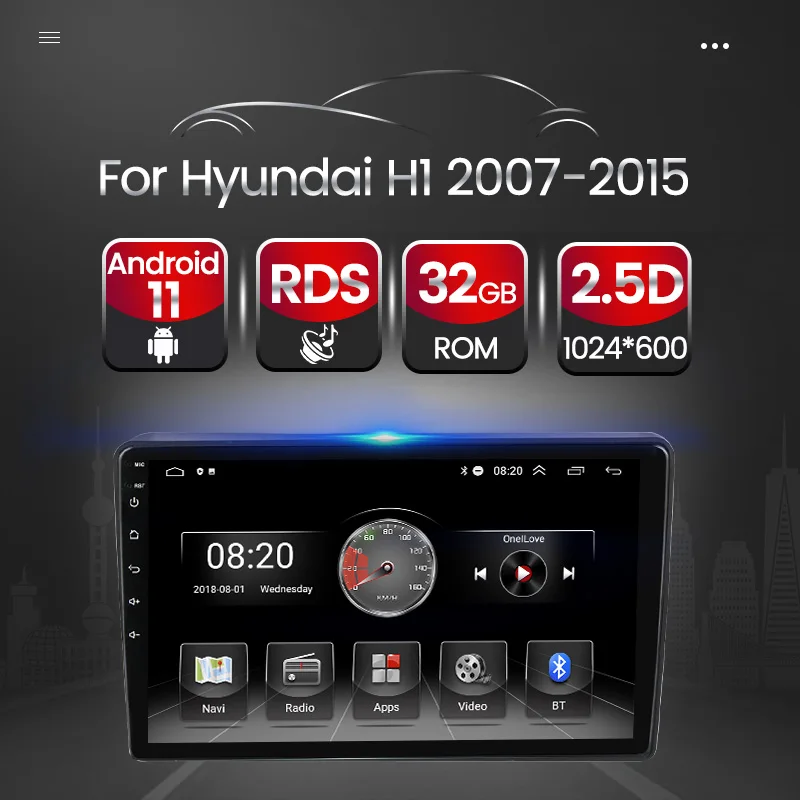 Автомагнитола для Hyundai, мультимедийный видеоплеер на Android 11, с IPS-экраном, HD 1024*600, GPS-навигацией, Wi-Fi, для H1, 2010, 2011, 2012, 2013, 2014