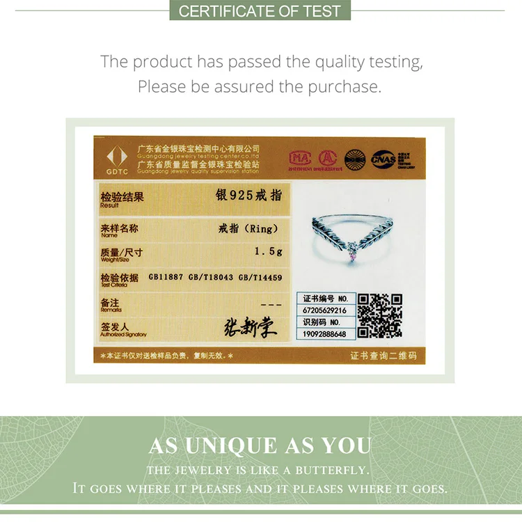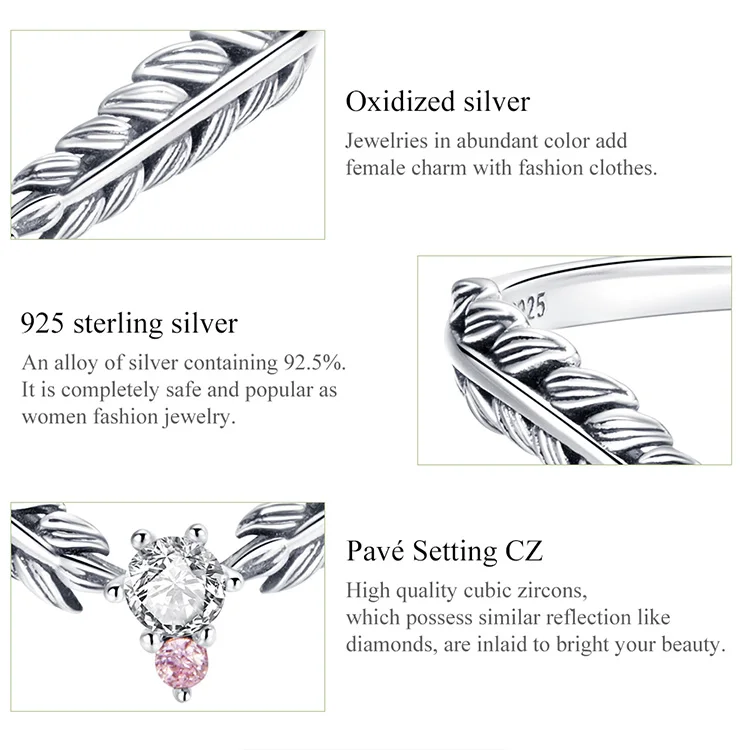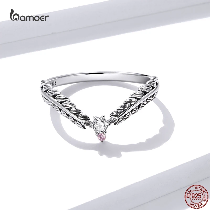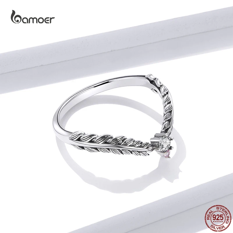 Bamoer лист кольцо Аутентичные 925 стерлингового серебра светильник...