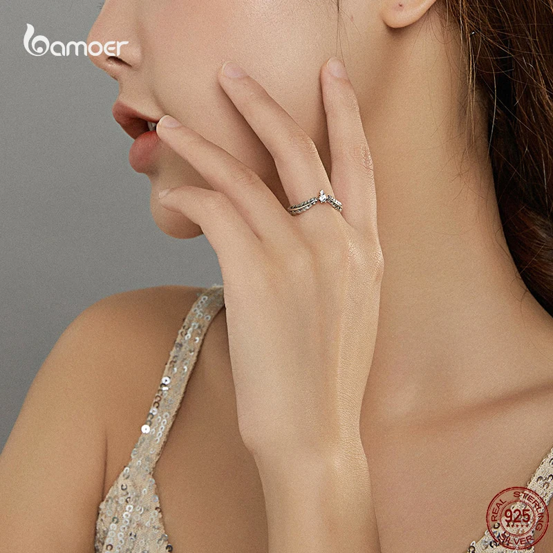 Женское кольцо на палец Bamoer, элегантное кольцо из чистого серебр...