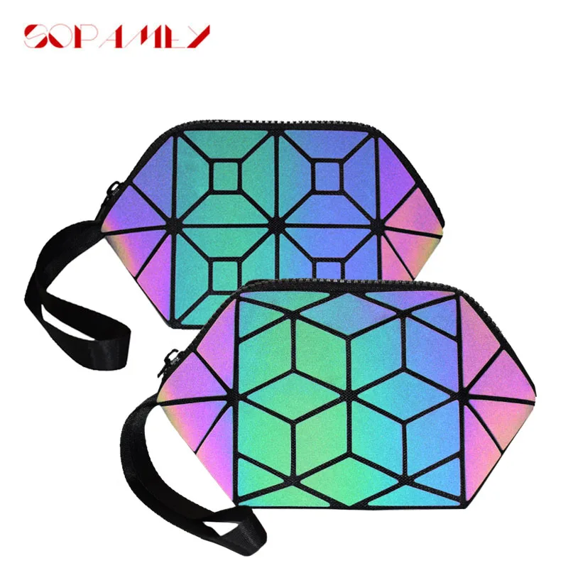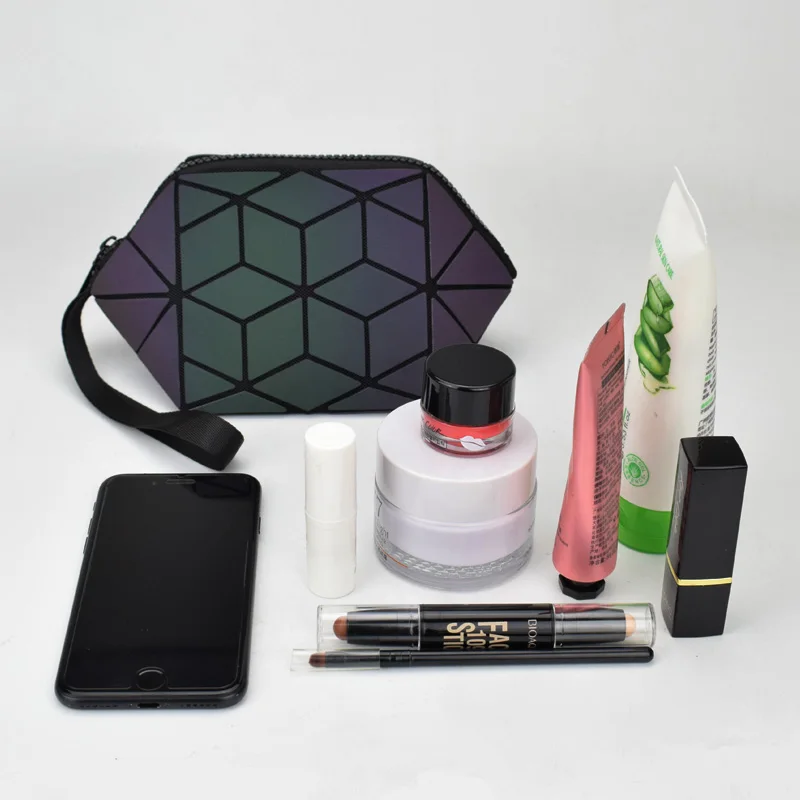 Модные сумки для макияжа, светящиеся геометрические женские космети...