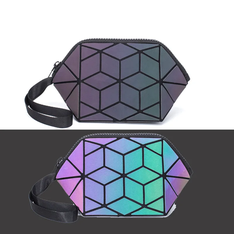 Новая светящаяся сумка, косметичка, сумка для туалетных принадлежностей, модная Геометрическая сумка на молнии, женская складная дорожная сумка для макияжа, 2021