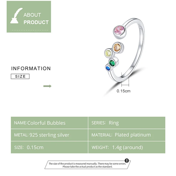 Женское кольцо из серебра 925 пробы, с разноцветными пузырьками